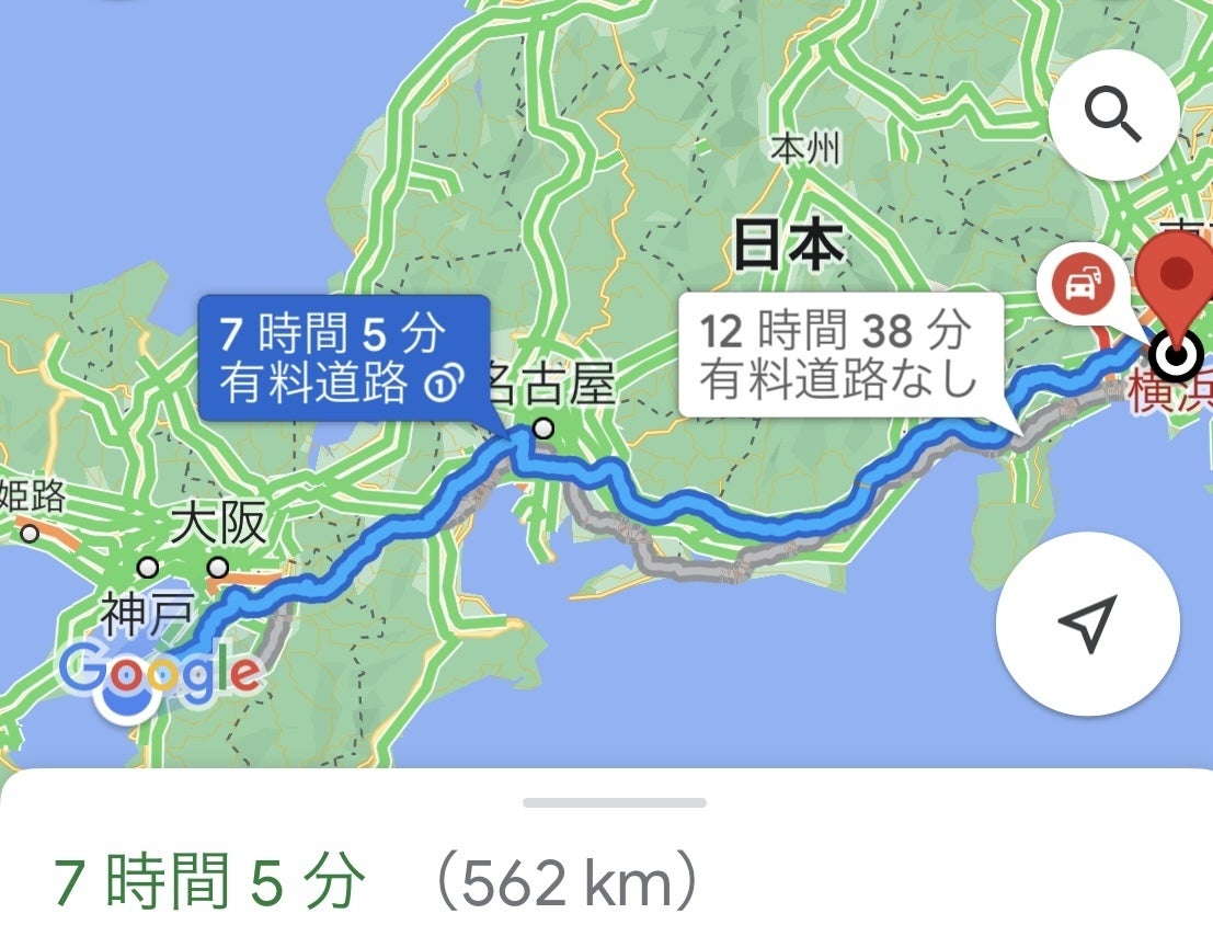 有料道路なしより遅く到着
