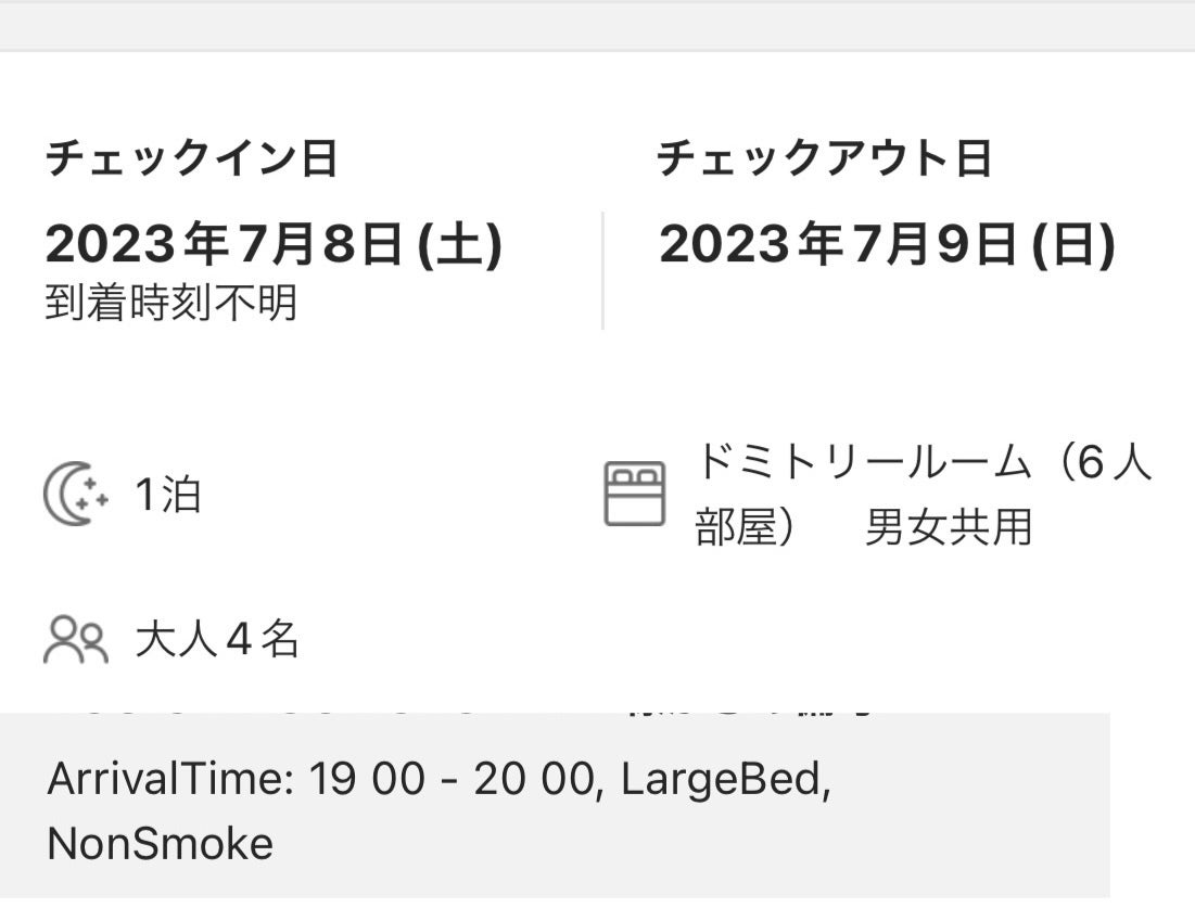 土曜予約、大人4名で夜間到着の予約