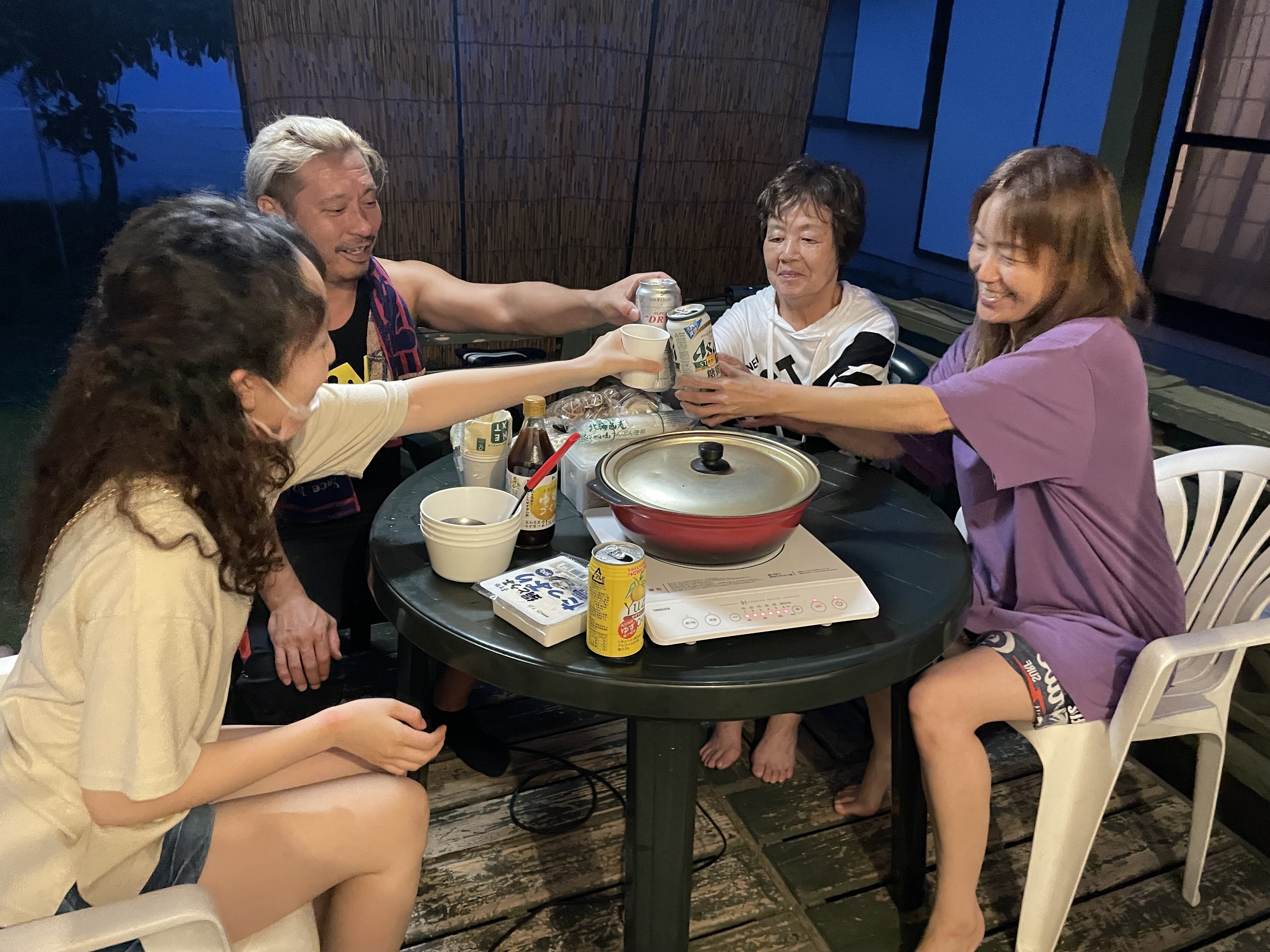 その間、仕込んでおいた鍋を囲み乾杯