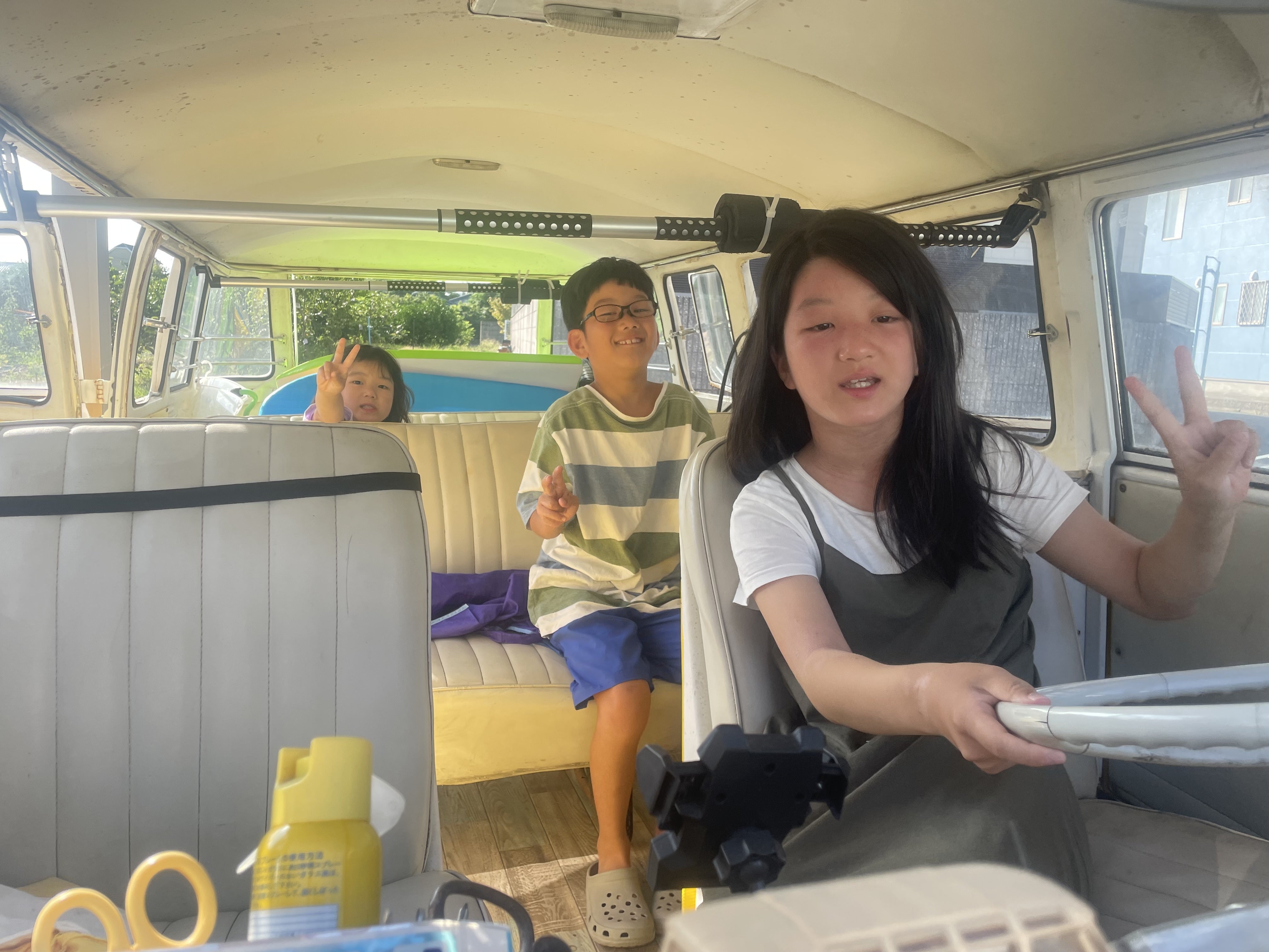 長男は、バスにボディーボードを搭載