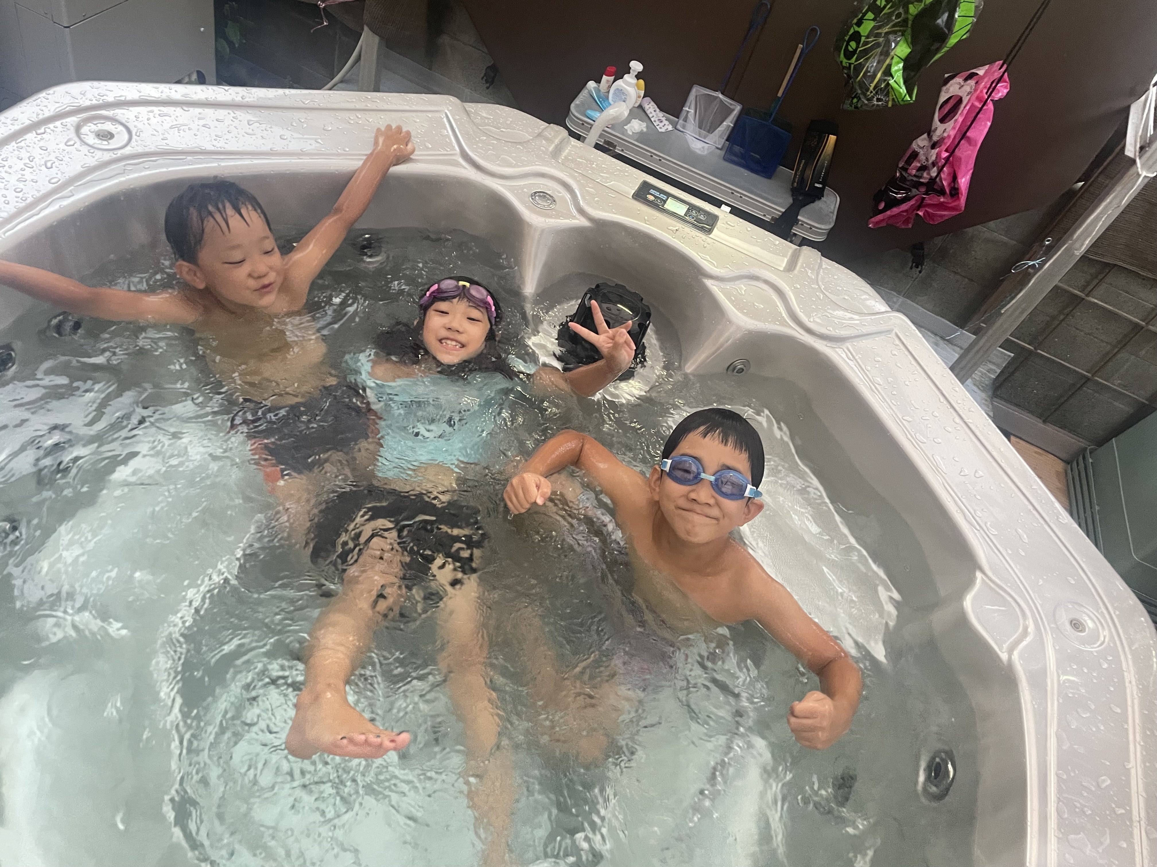 子供達、毎日3日連続のジャグジ三昧
