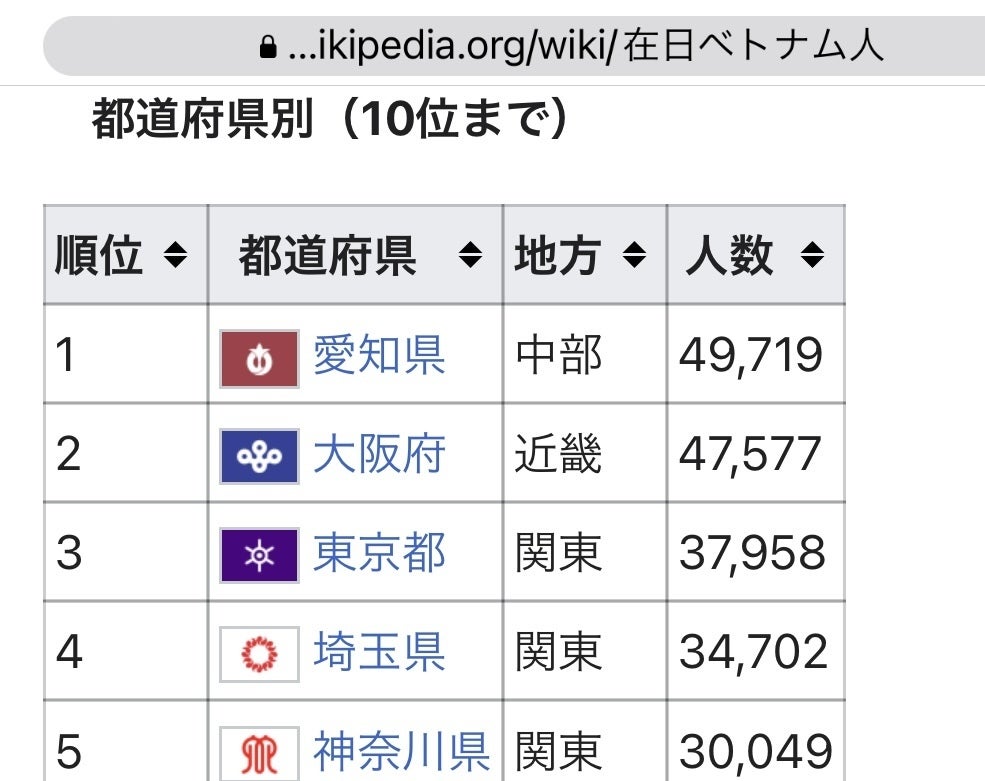 全在日外国人だと1位東京2位愛知