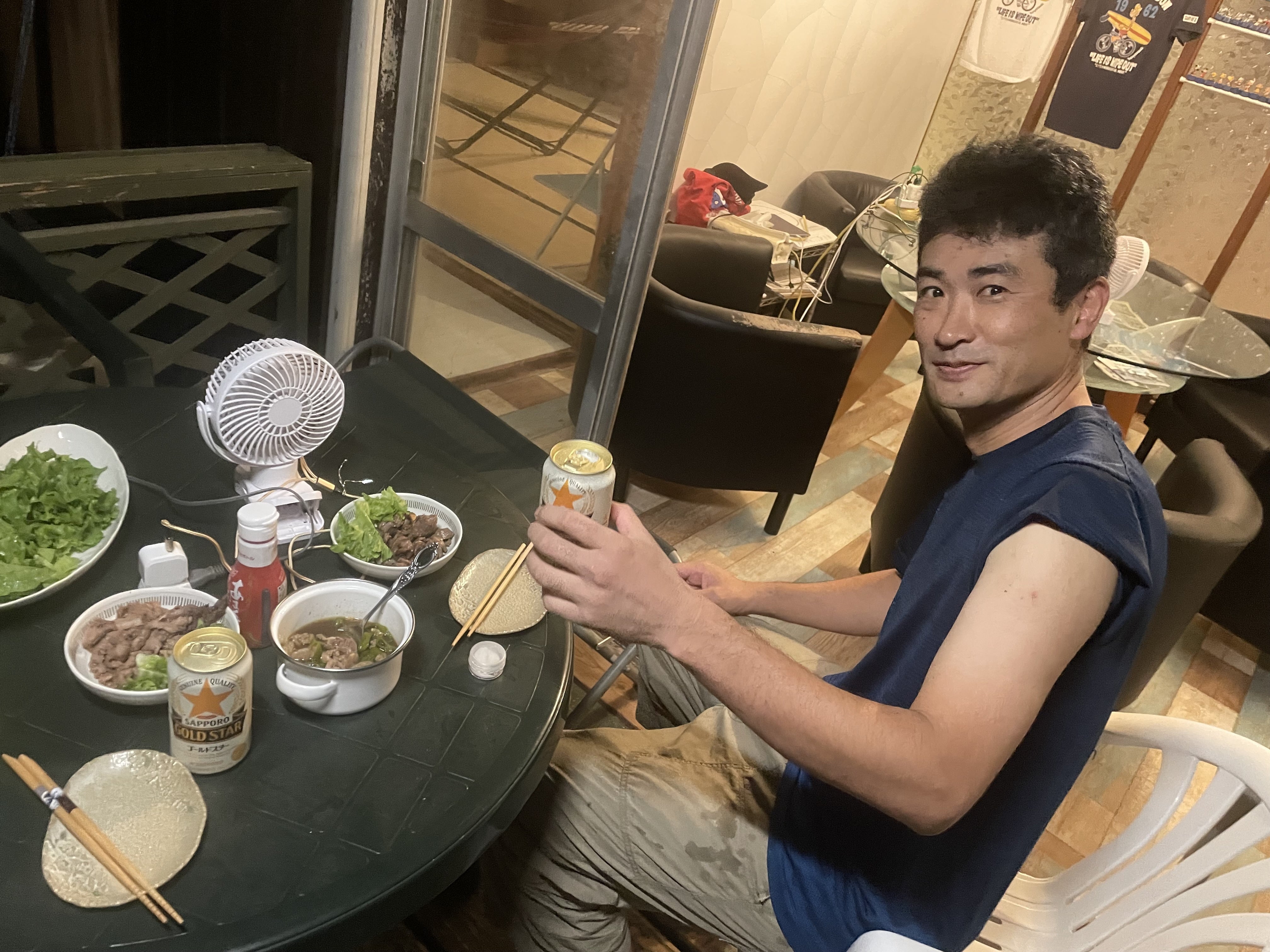2日間、ウッドデッキでビールで乾杯