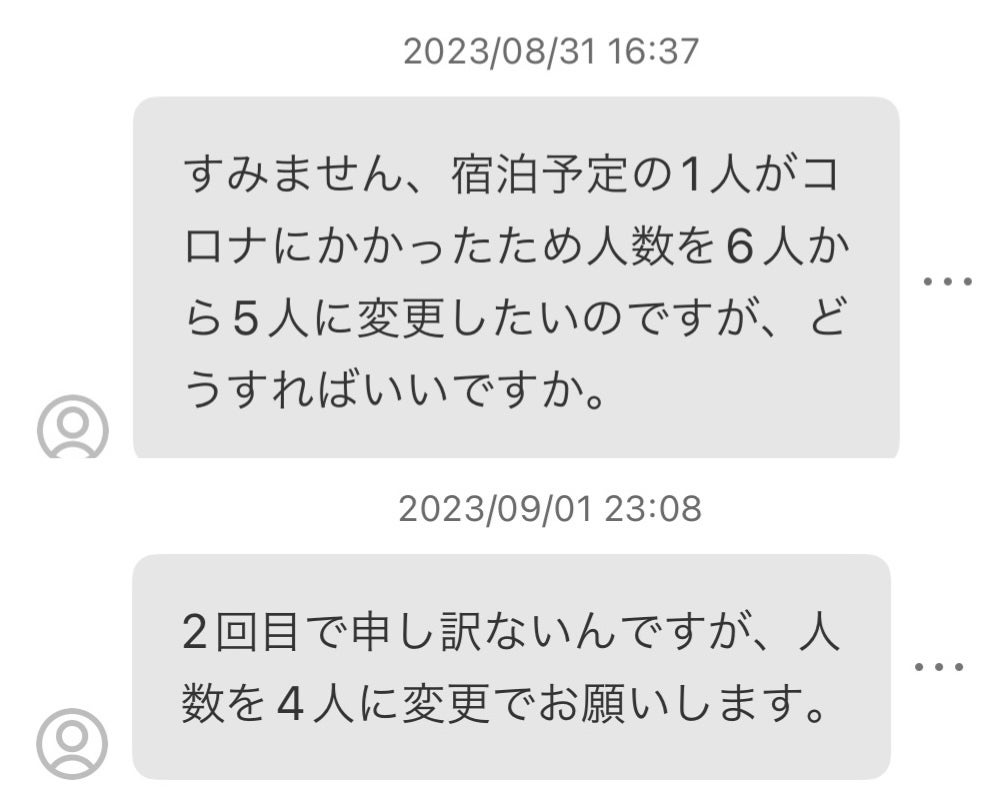 火曜予約、大人4名で夜間到着の予約