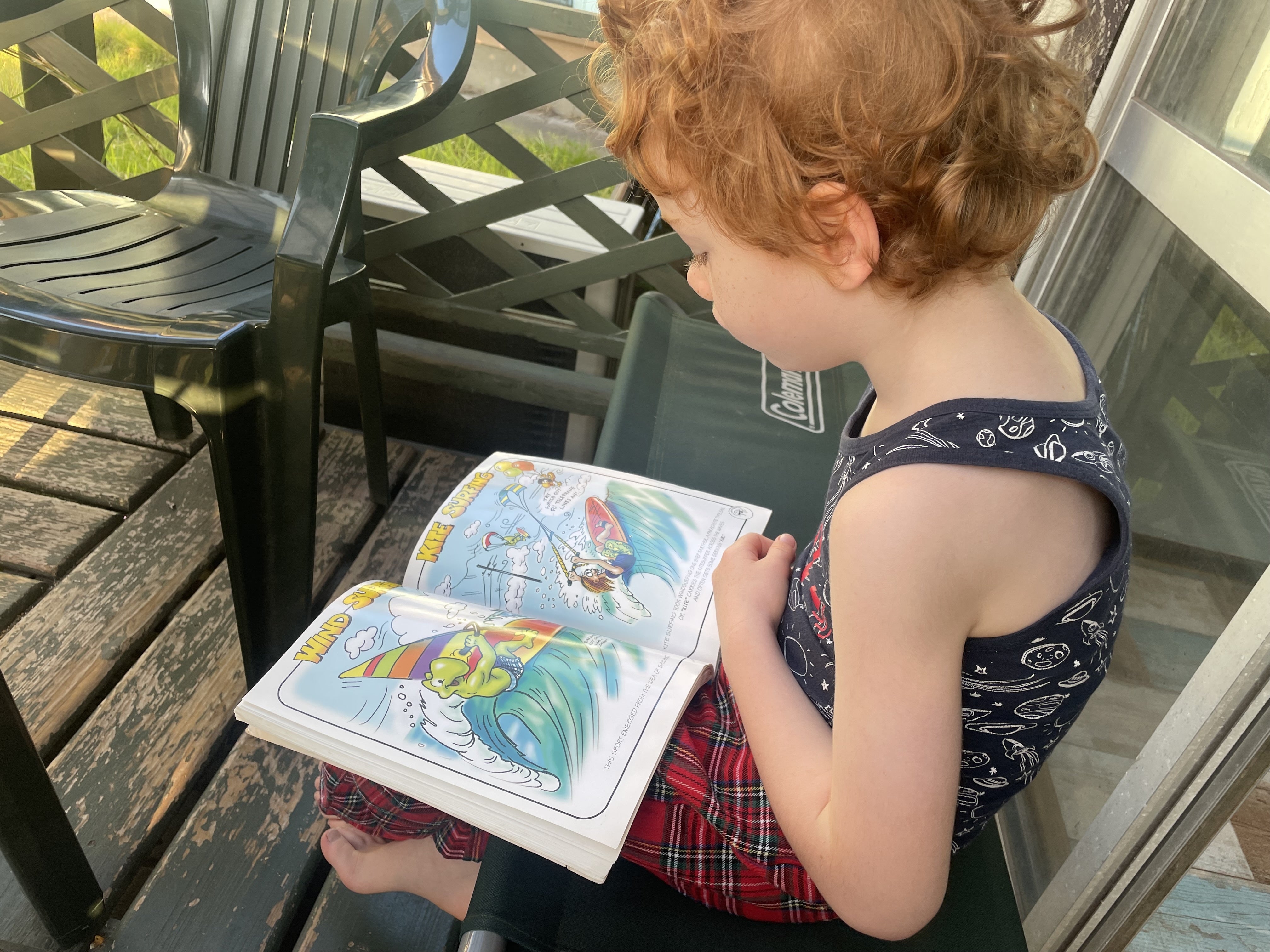サーフィン絵本に夢中な兄