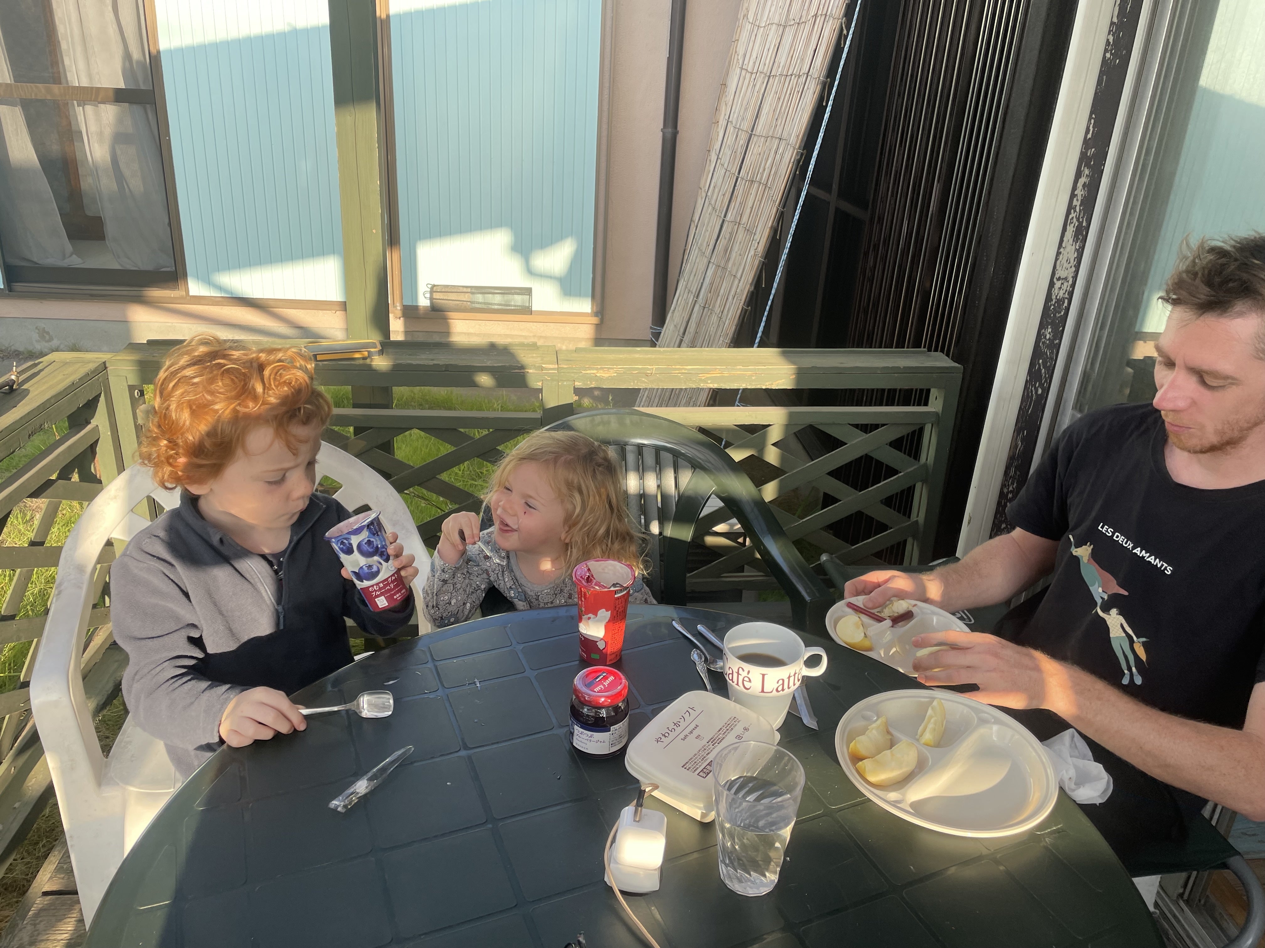 朝食後、女性陣は出発準備で2人連携