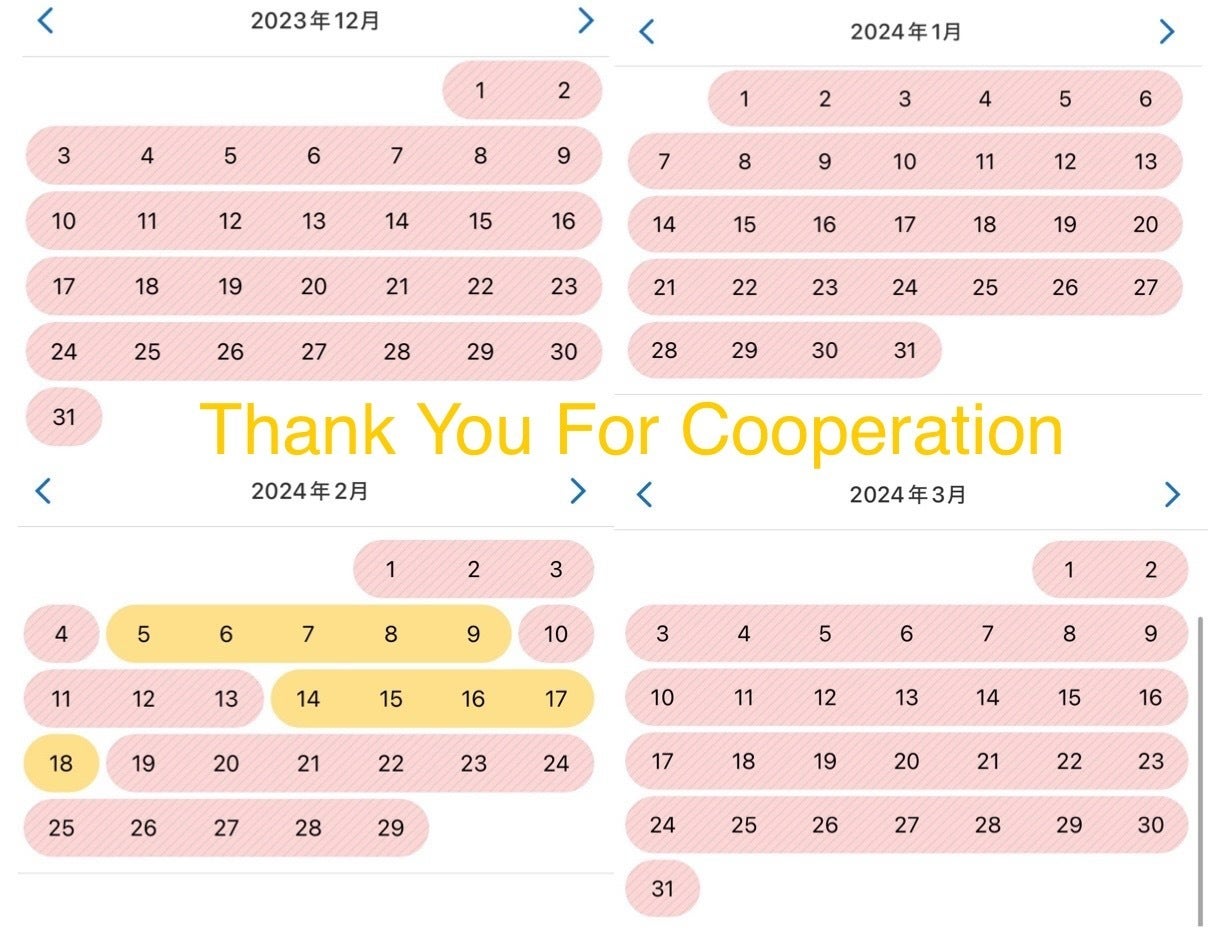 あとは、2月の10泊予約で満員御礼