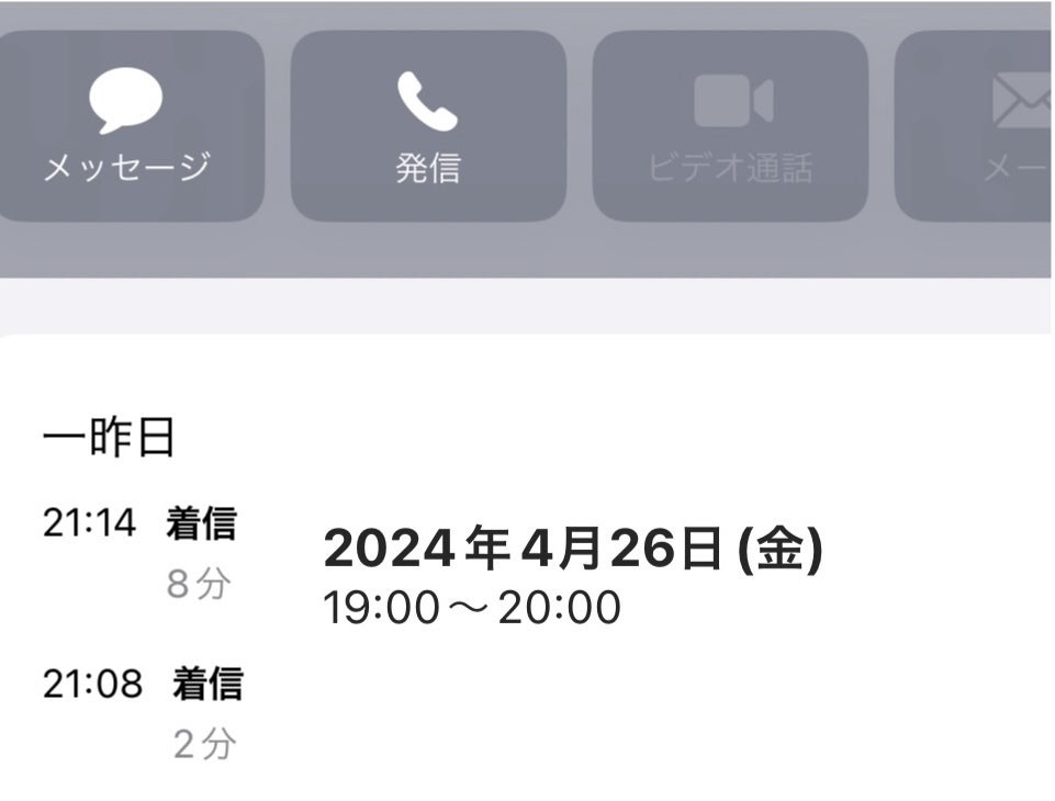 21時頃、今日のゲストからの電話着信