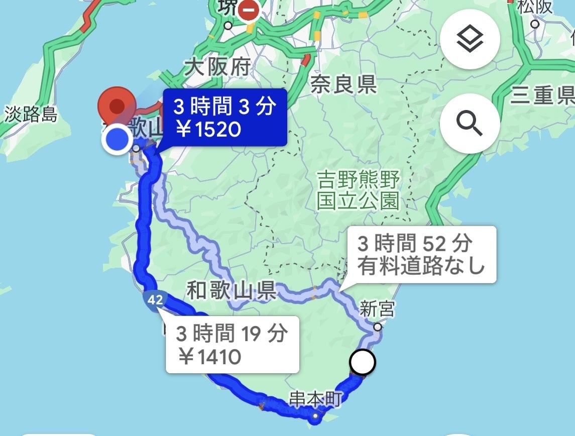今回は、和歌山県の端から端へ3時間