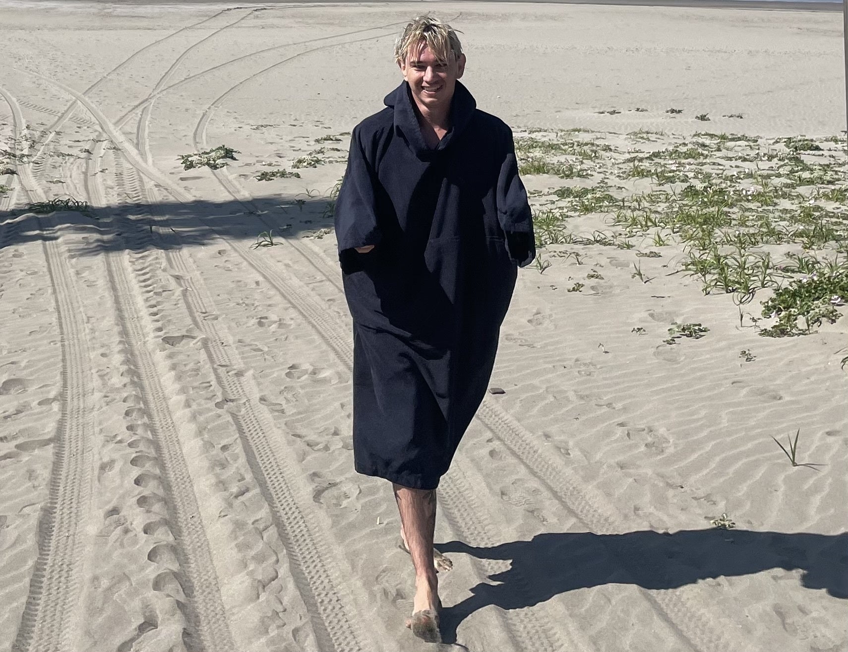 残念無念、海は冷たく彼の心は温かく