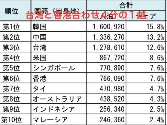 韓国の方が多いとは以外