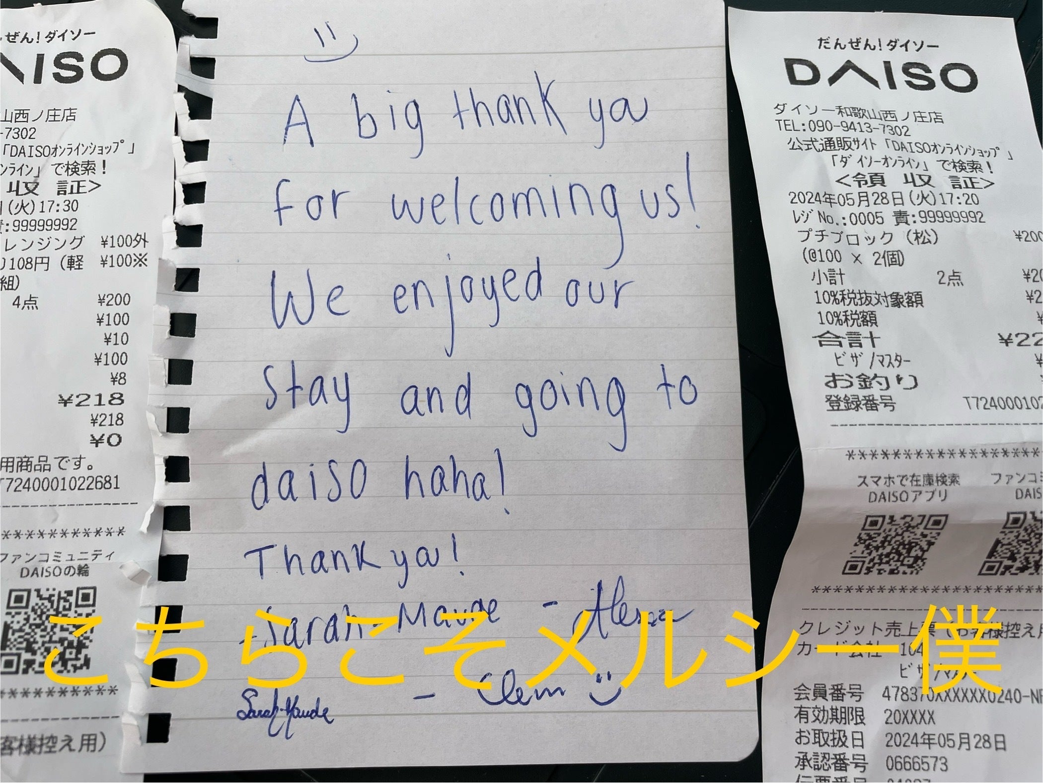 帰宅後、キッチンに感謝のメモが一片