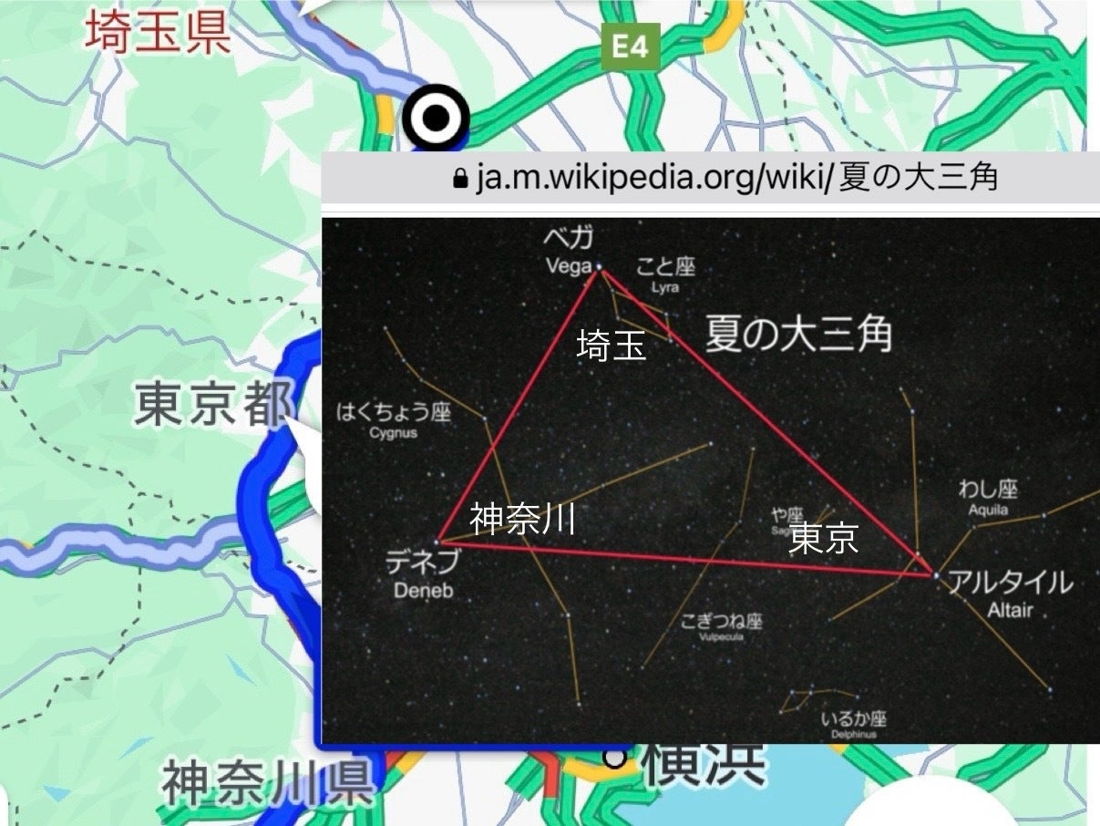 まるで、関東3大都県の夏の大三角形
