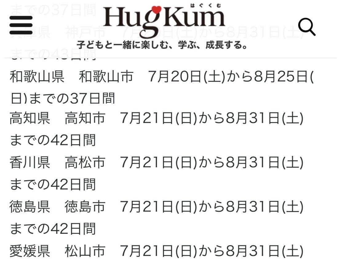 前後の土日入れたら45日間の夏休み?
