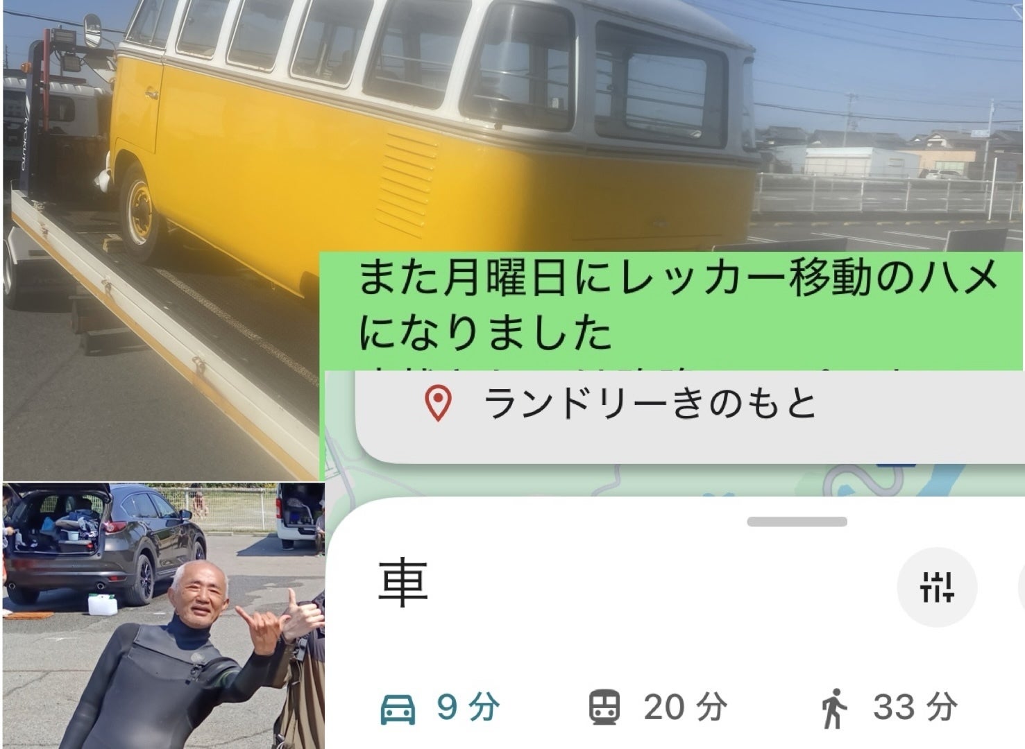 なんせ、車は故障でレッカー車で牽引