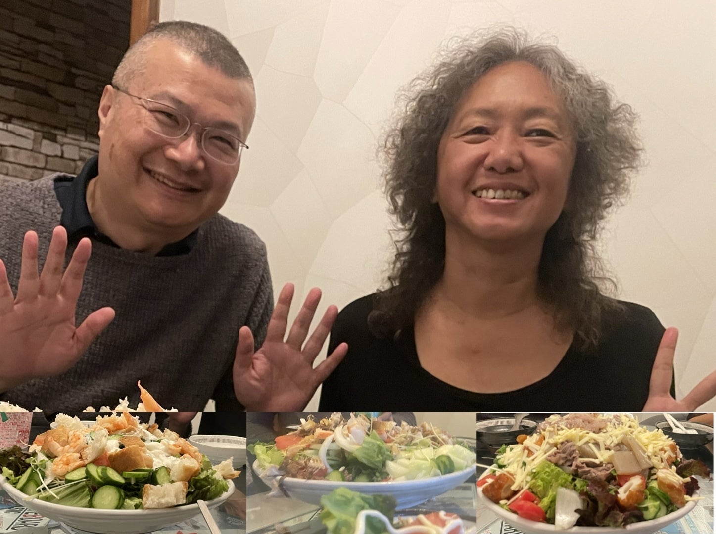 3人で、大盛りの大皿料理仲良く分配