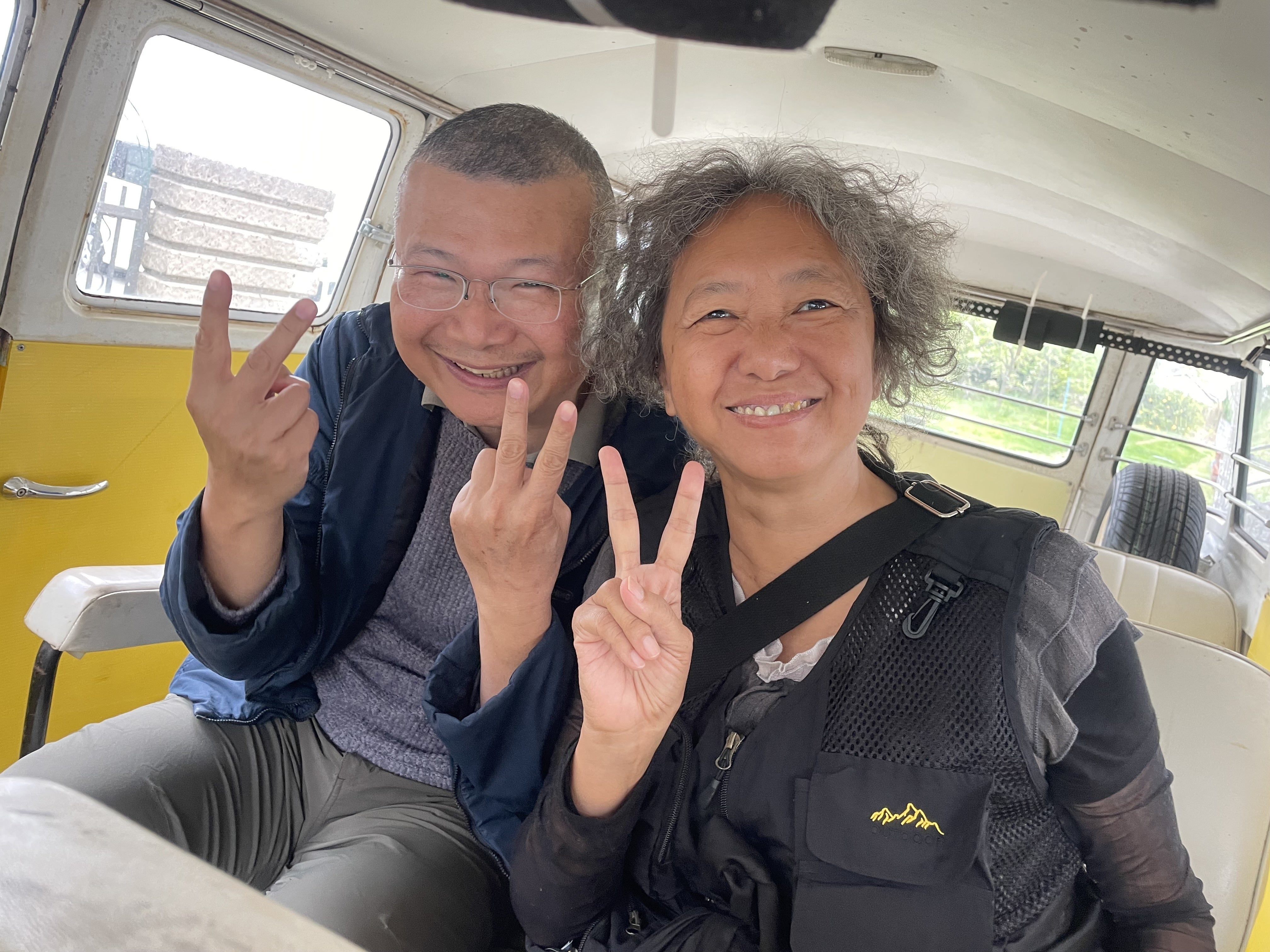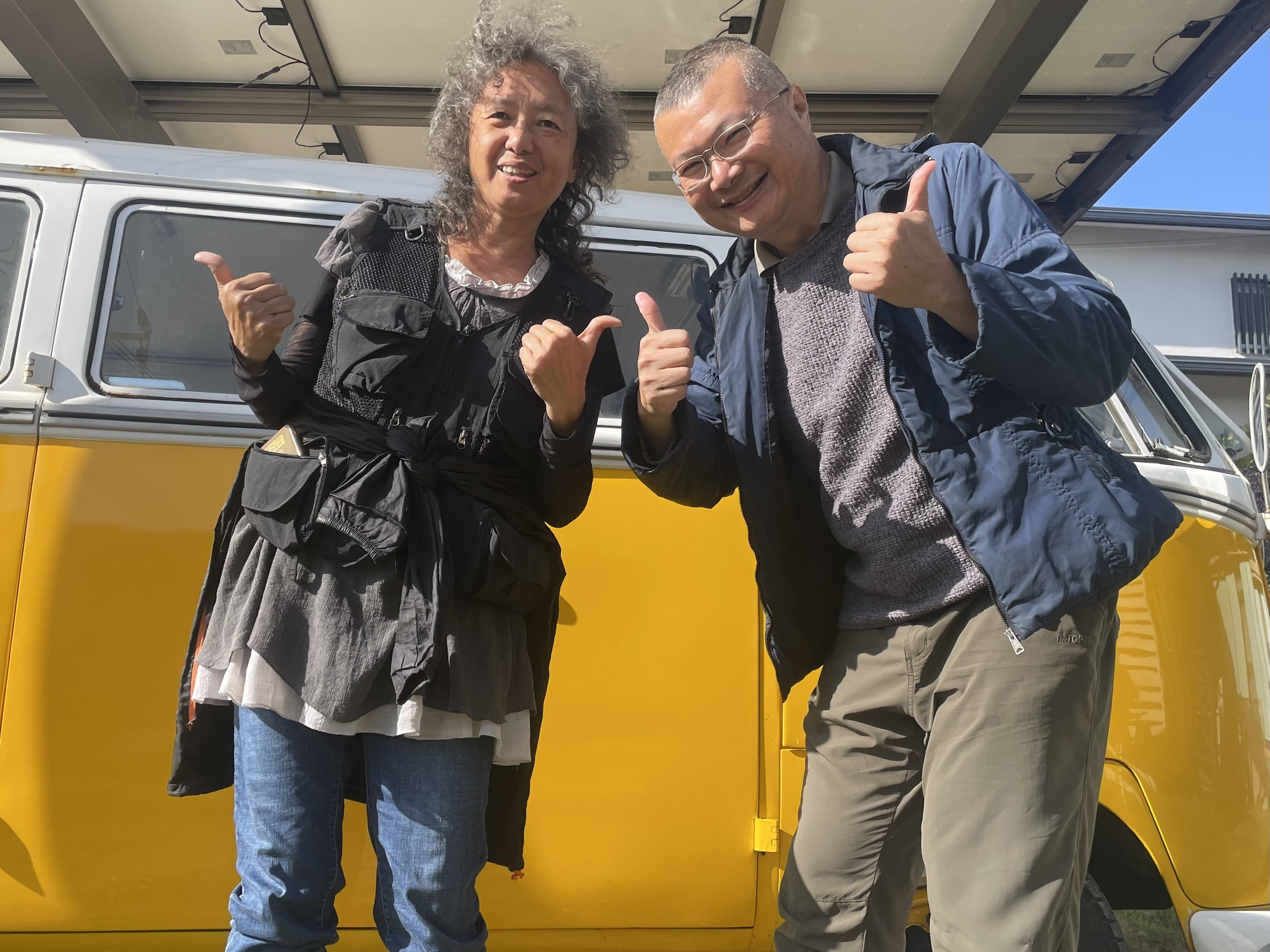 黄色バスにノリノリ