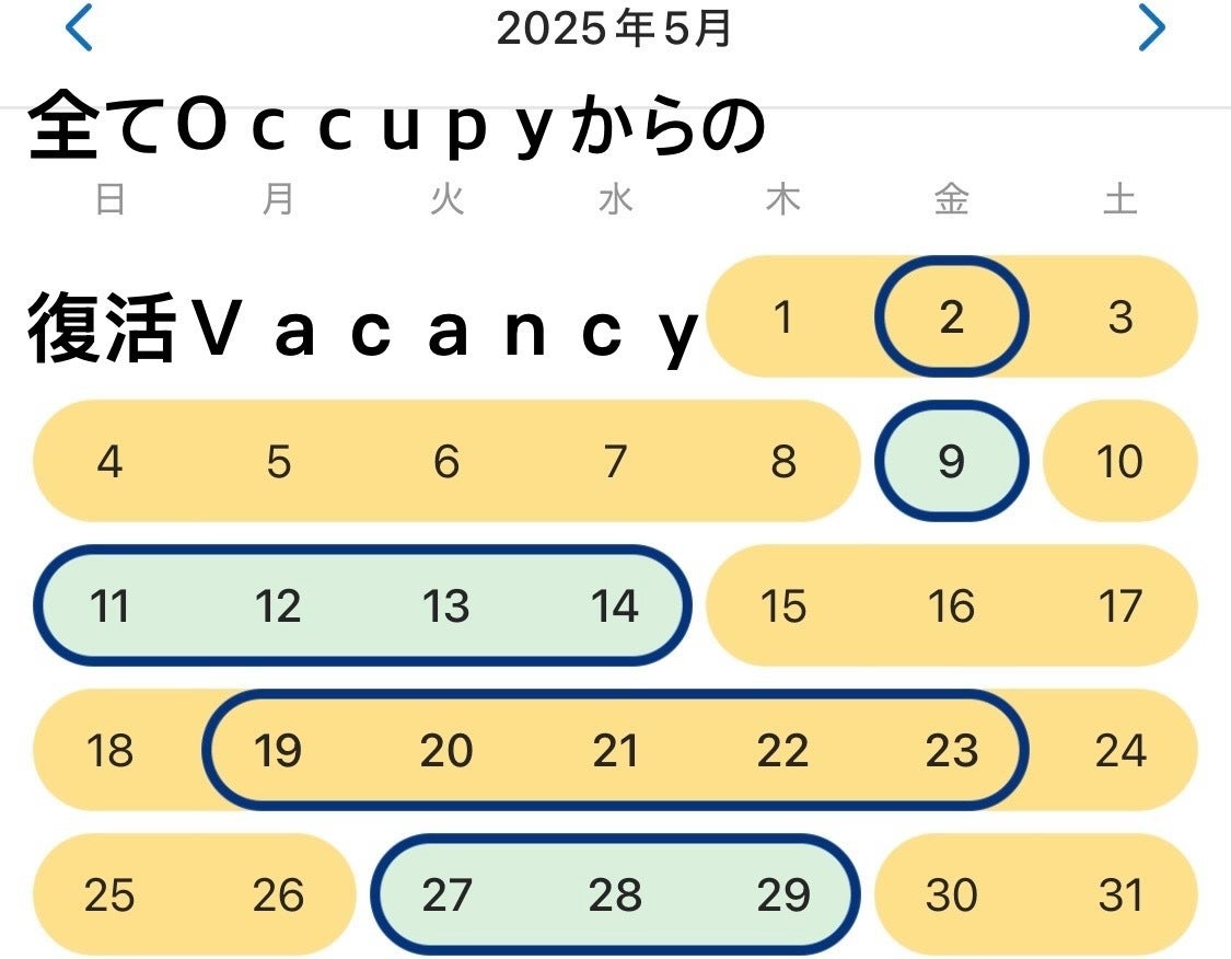 やった、5月8泊復活Vacancy