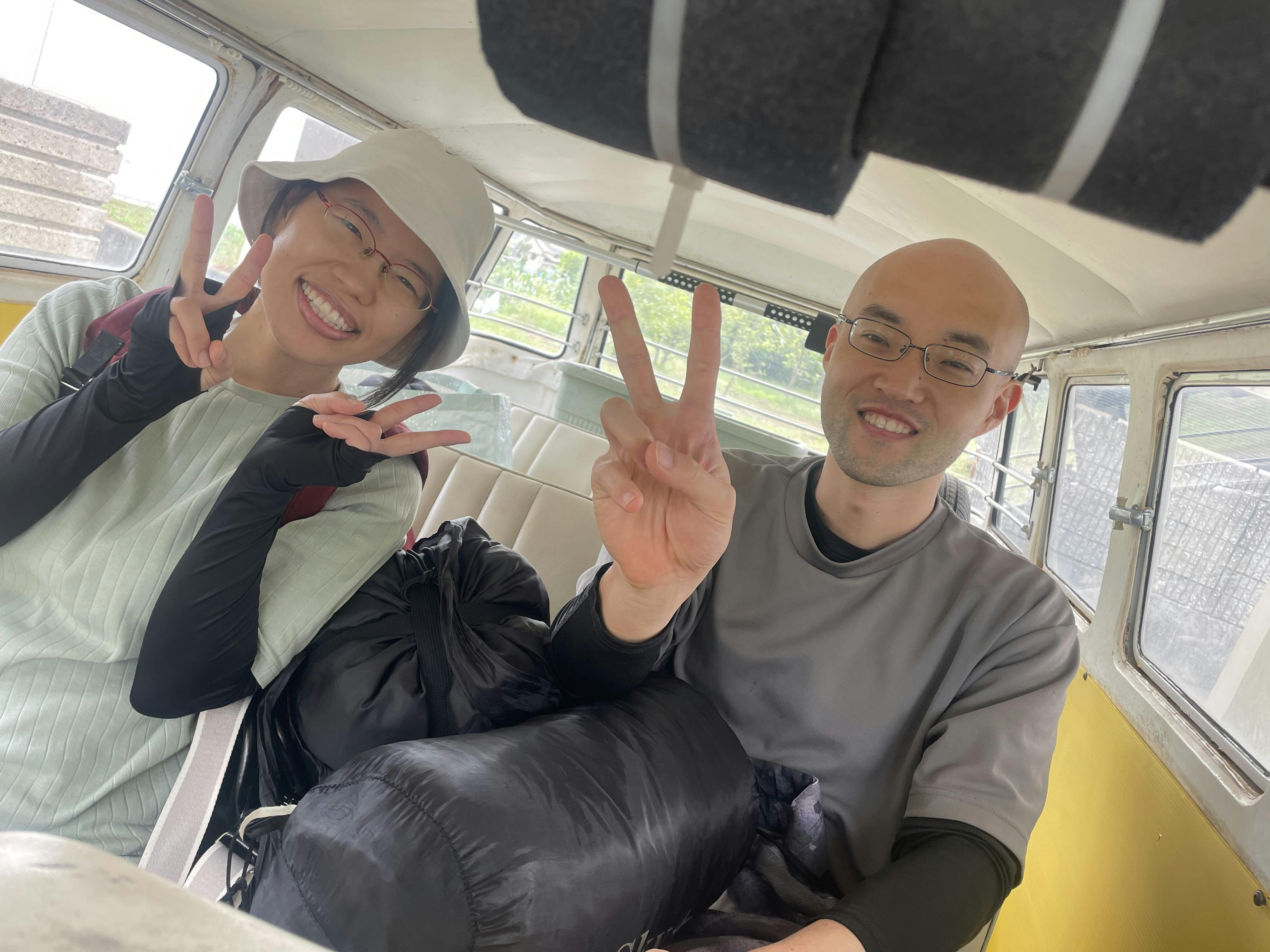 おんぼろバスに大興奮