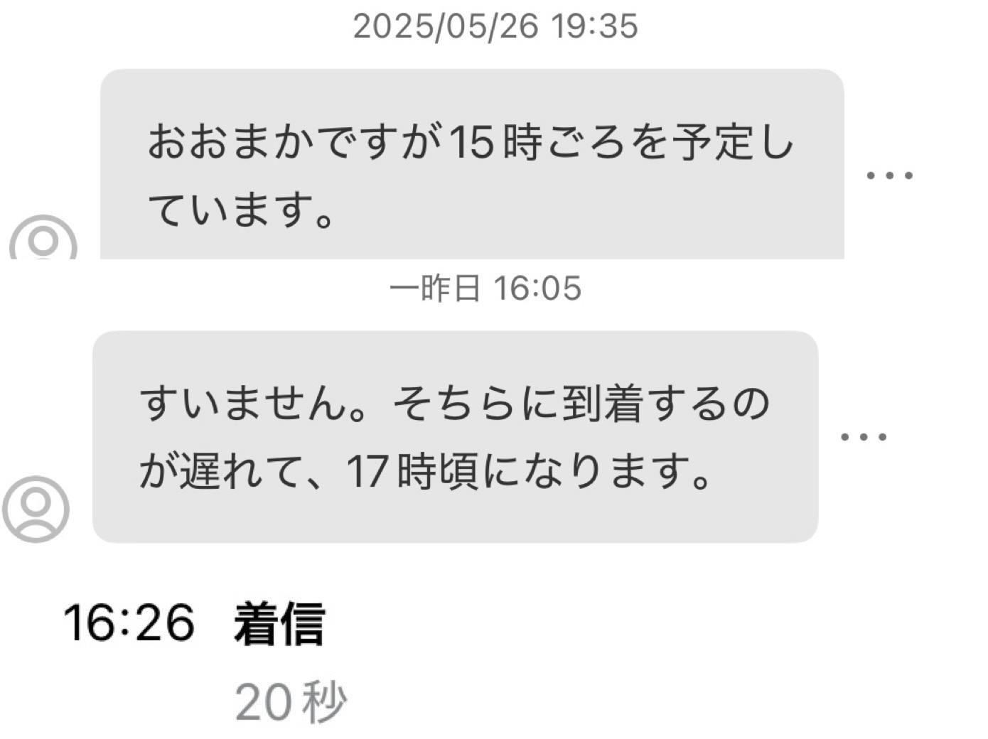 なのに、30分以上前に到着電話受信