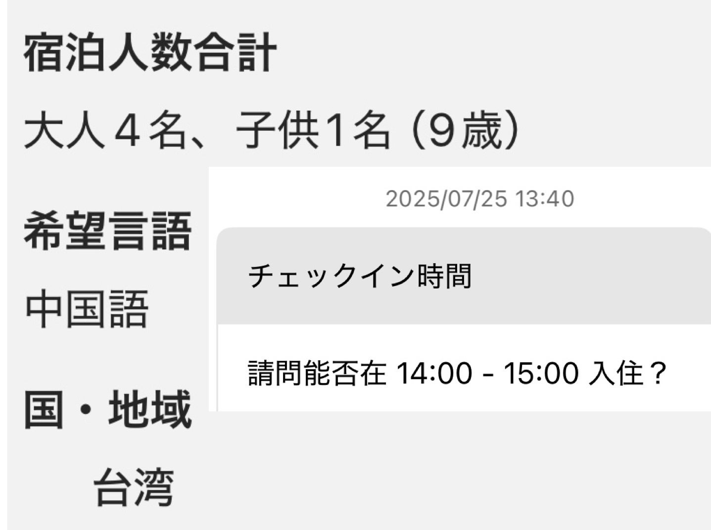 15時頃、台湾からの家族チェックイン