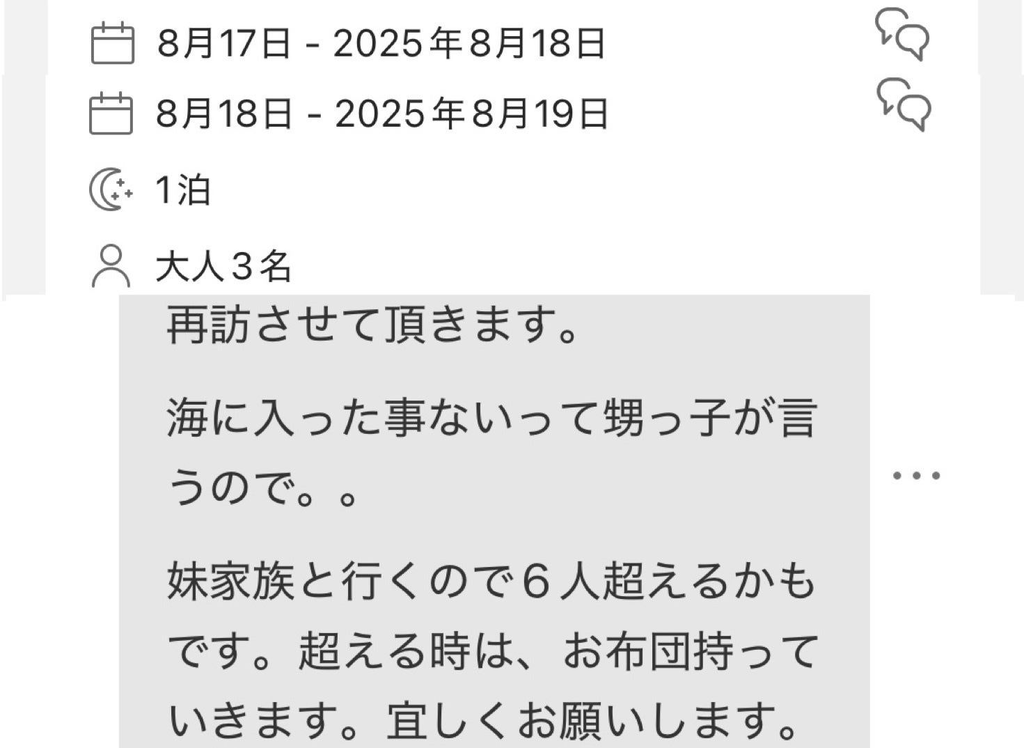 2泊3日、2度目ゲストの母と妹家族