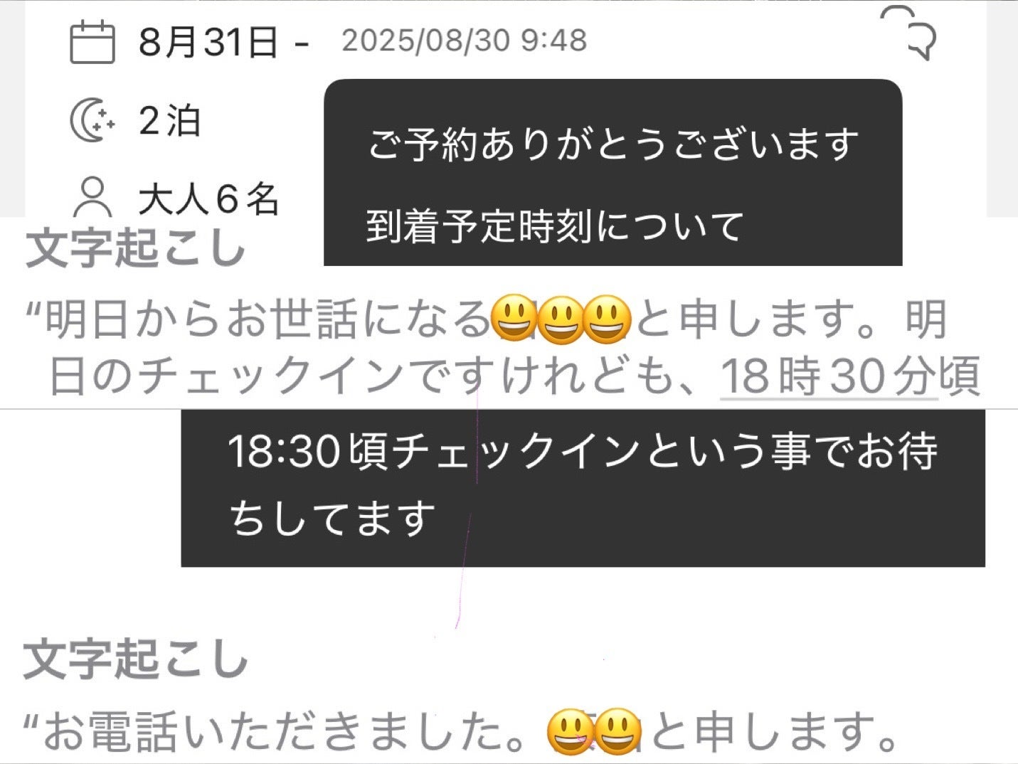 最初は、音声で予約者の女性の声確認