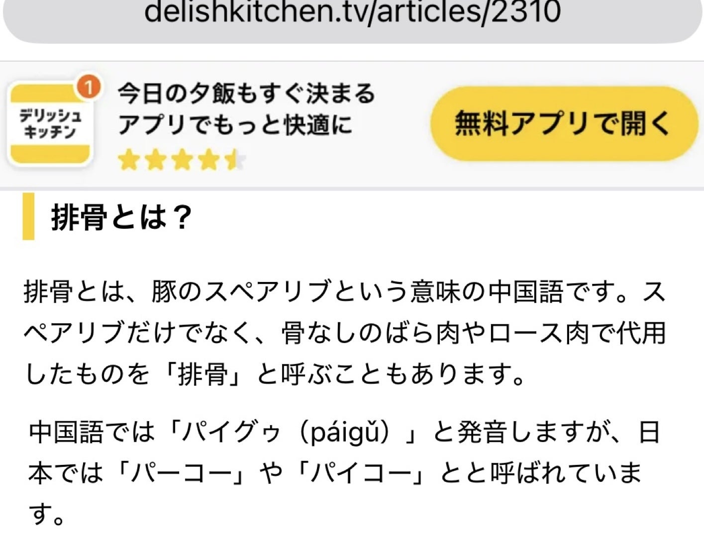 なんせ、中国で豚のスペアリブが語源