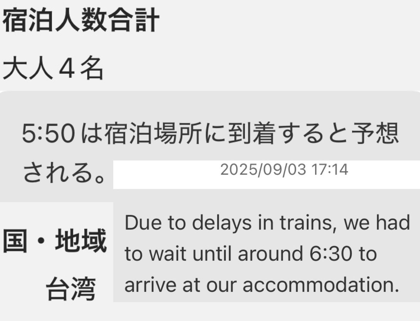 すると、今度は英語で遅延通知を受信