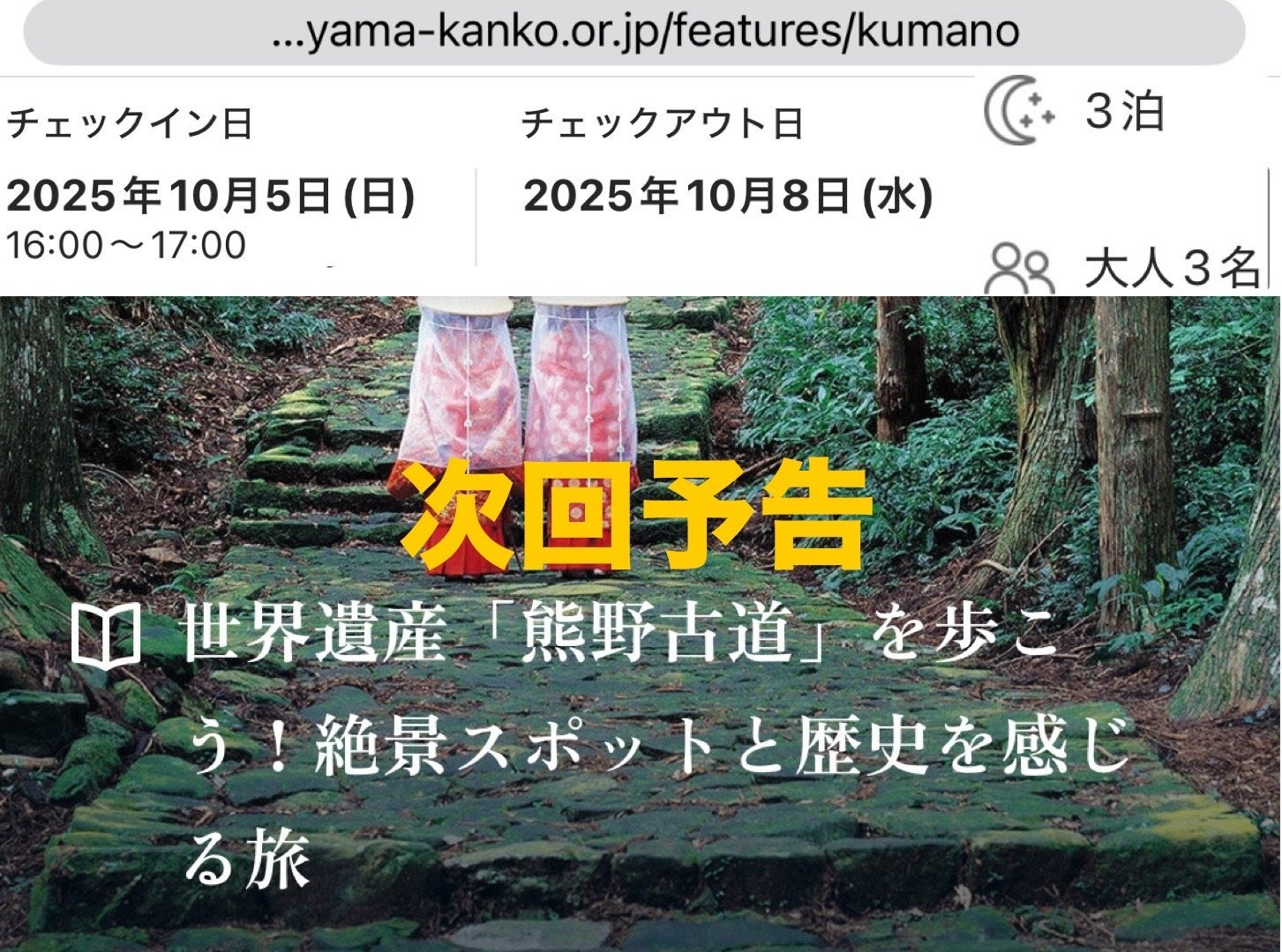 2泊3日、の予約の前9文字フェイク