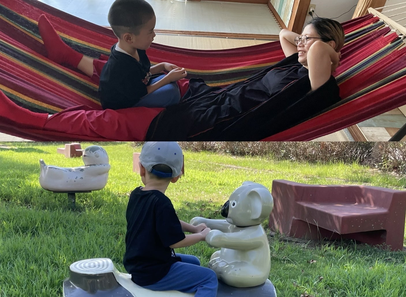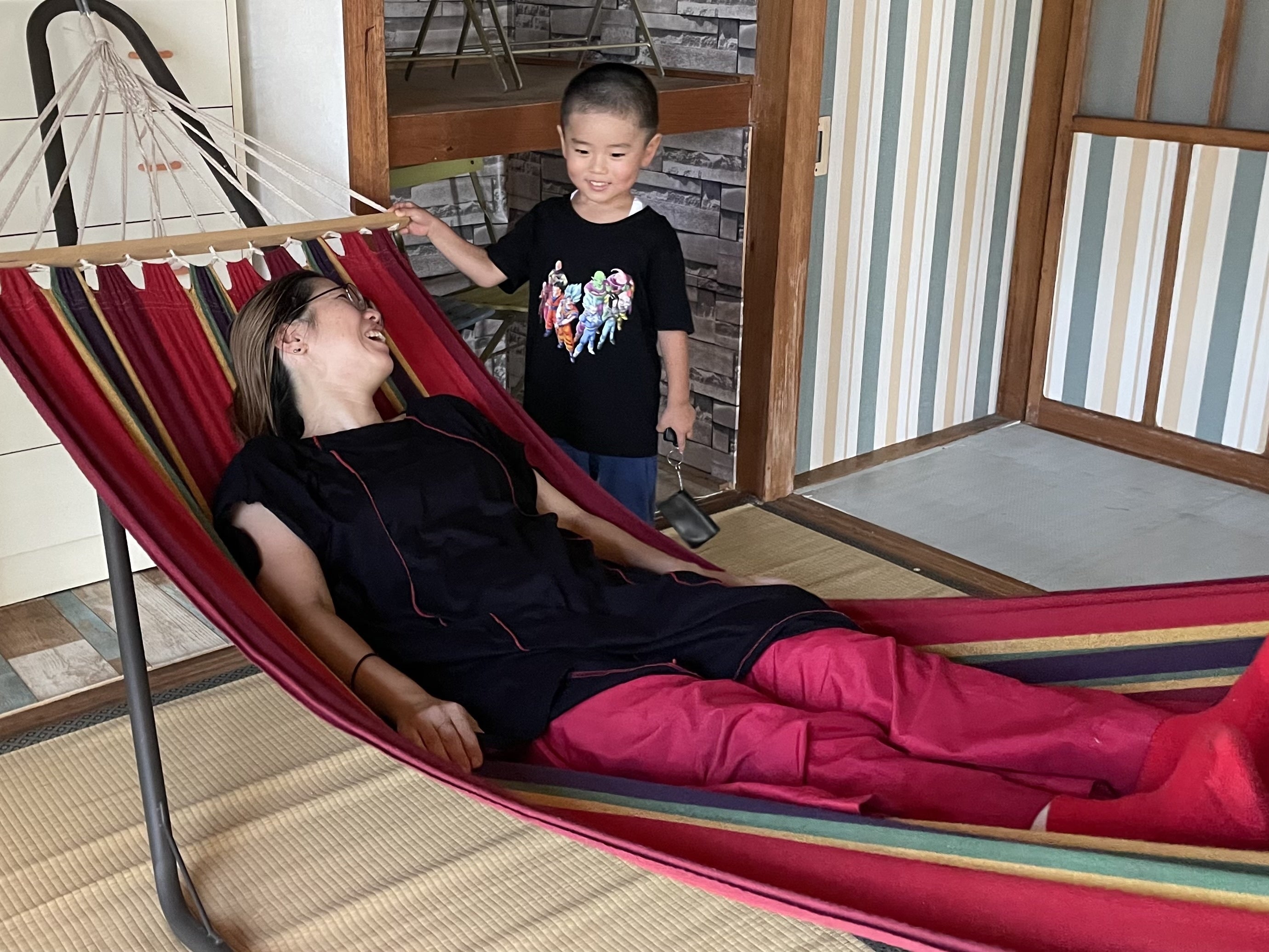 苦手なハンモックでママをユラユラ