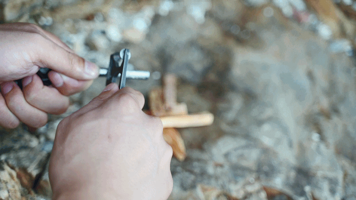 ■キャンプ好きなら一度は試してみたいファイヤースターターでの着火、PockeTool 2.0なら初心者の方でも簡単にできます。