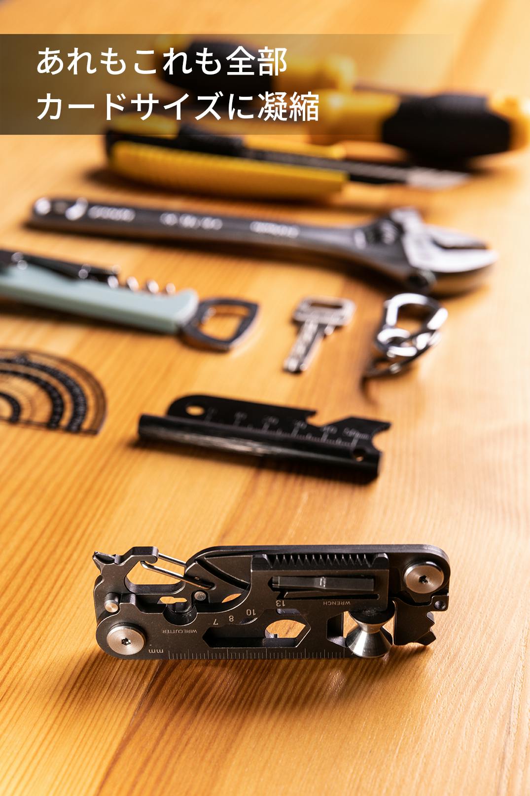 マルチツールと聞くとごつごつしたものをイメージする方が多いではないでしょうか。PockeTool 2.0そんなイメージを一新し、ポケットや財布にも収納できる程超コンパクトなサイズに仕上げました!