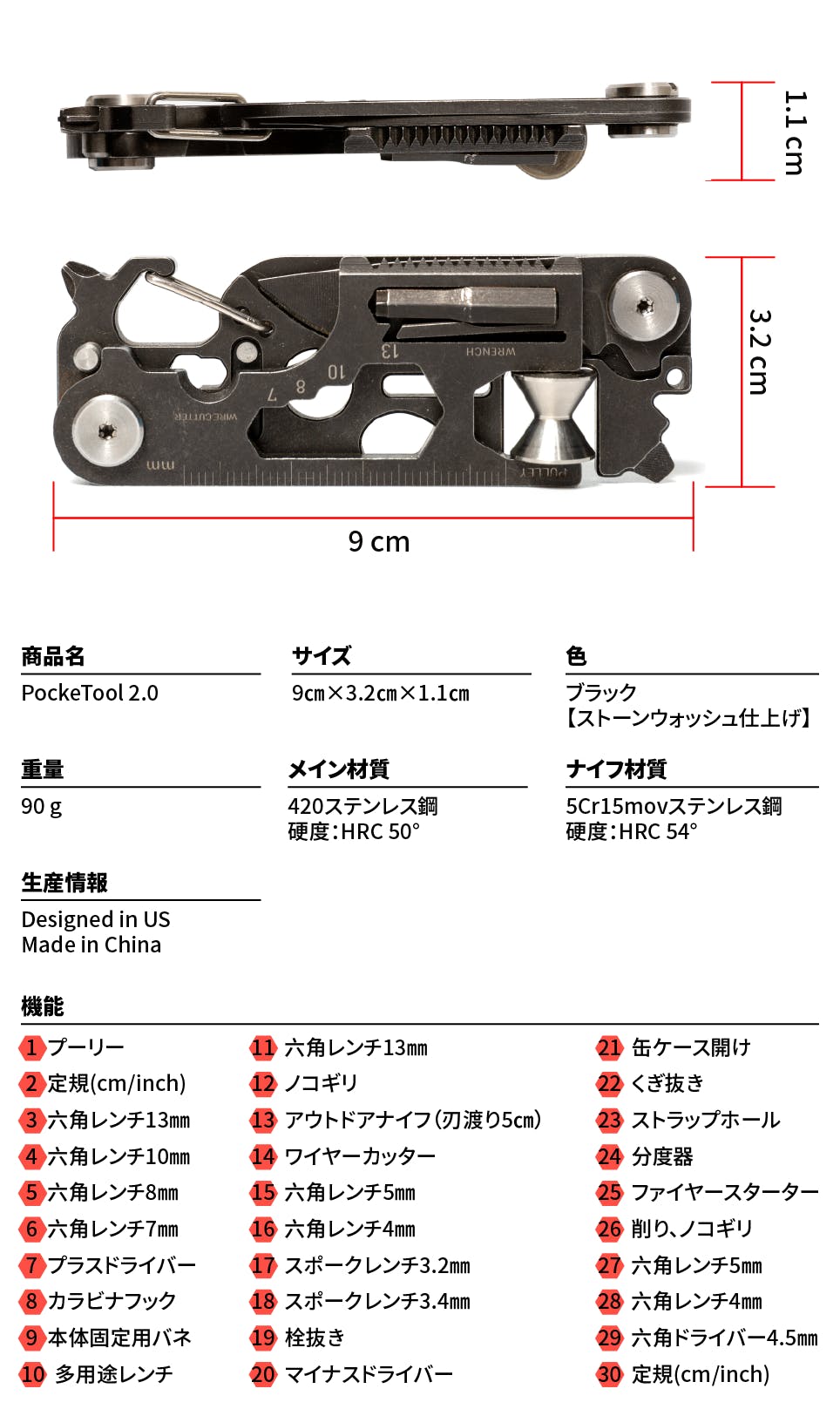 アメリカで設立されたMicroNovelty LLCは、2019年に初代PockeTool を公開しました。10 in 1だった初代は多くのから支持と頂くことができ、同時に多くのご要望も頂きました。それらを1年かけて設計に取り入れたことで大幅にアップグレードしたPockeTool 2.0が誕生しました。