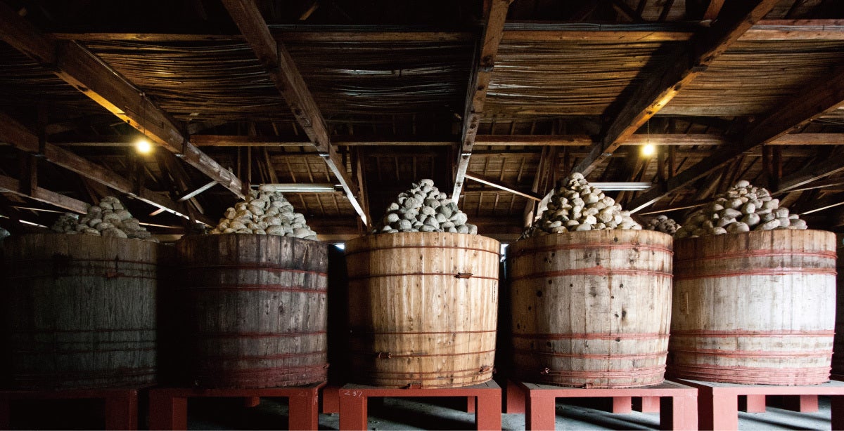 以来、阿波の殿様蜂須賀公に供したことから名前がついたと言われる伝統の「御膳味噌」をはじめ、多彩な味噌を製造しています。また、蒸したお米が糀になるまでの糀づくりは、今でも手作業を続けています。