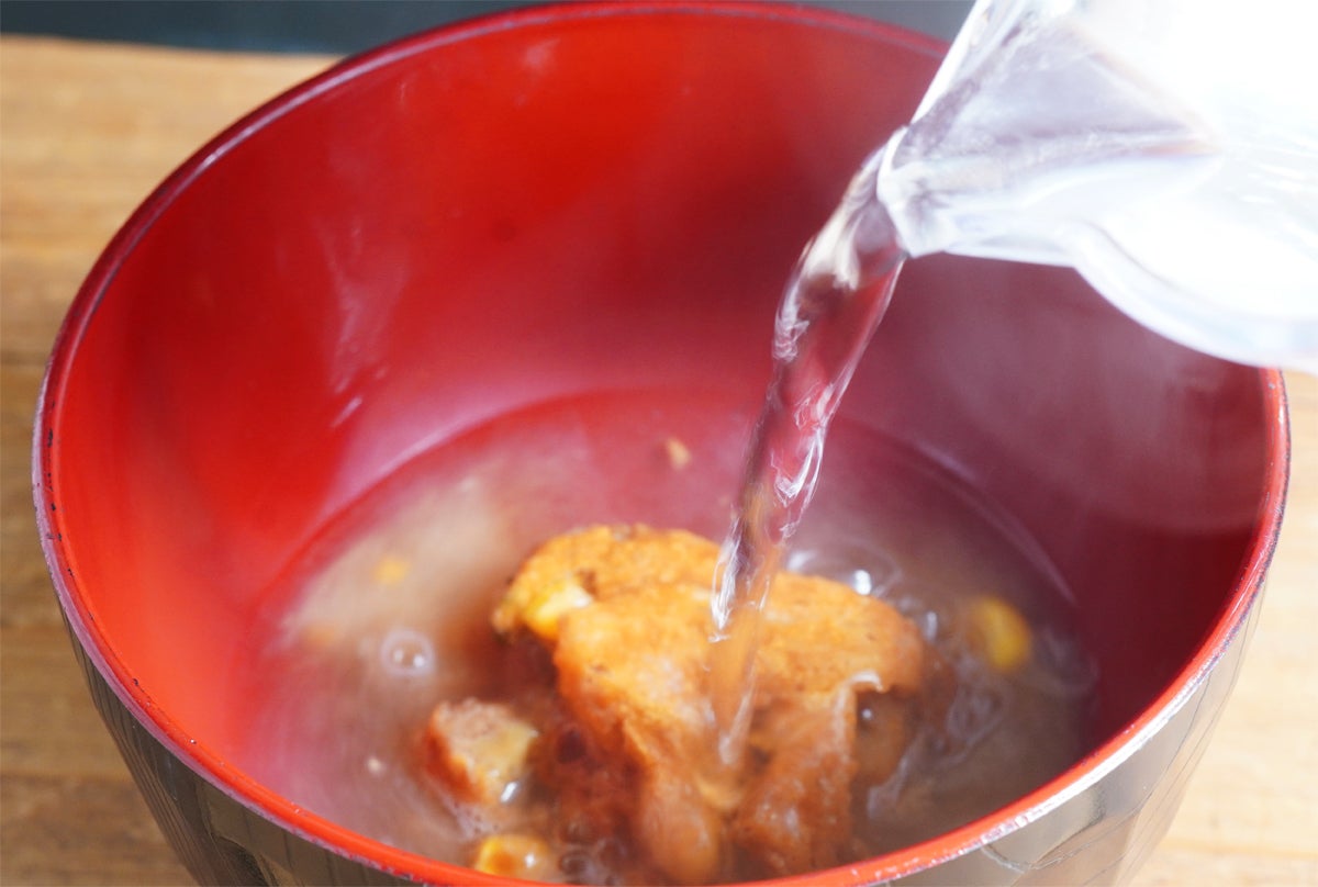 お椀に熱々のお湯150ccを注ぐだけで旅する気分を楽しめます。
