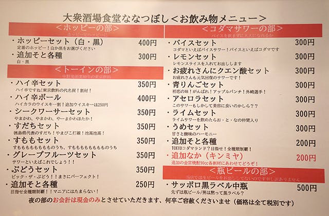 実際お店に来るのが困難なお客様、酒場が好き、せんべろが好きとにかく応援してみたいけど東京に足を運ぶのは大変というのんべえの方、Twitterで気になっていた!というフォロワー様!ななつぼしの存続、酒場の存続、間借り店舗の存続のために500円の無償のご支援をくださいませ!