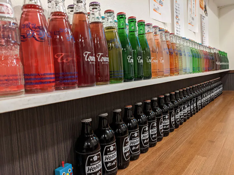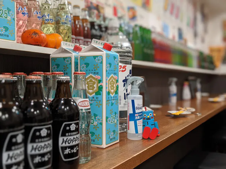 昔懐かしい瓶の割材が勢ぞろい!これだけの品ぞろえは都内の酒場でも珍しい!?瓶の割材を取りそろえる理由の一つとなったのが「東京飲料」様http://www.tokyo-inryou.com/のTwitterを拝見し、商品に魅力を感じたのと、飲食店への卸が少なくなっていて経営もさみしいという状況を知ったからでした。