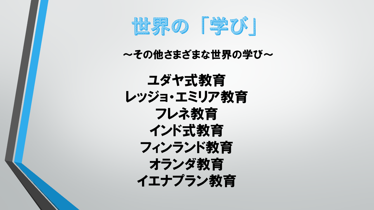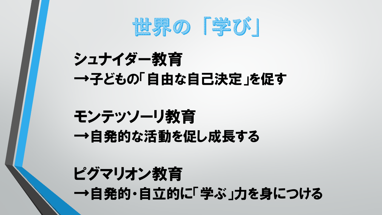 この事業では一つの固まった教育法ではなく、セルフマネージメント力を身につける世界中の教育を軸に学びを展開しています。