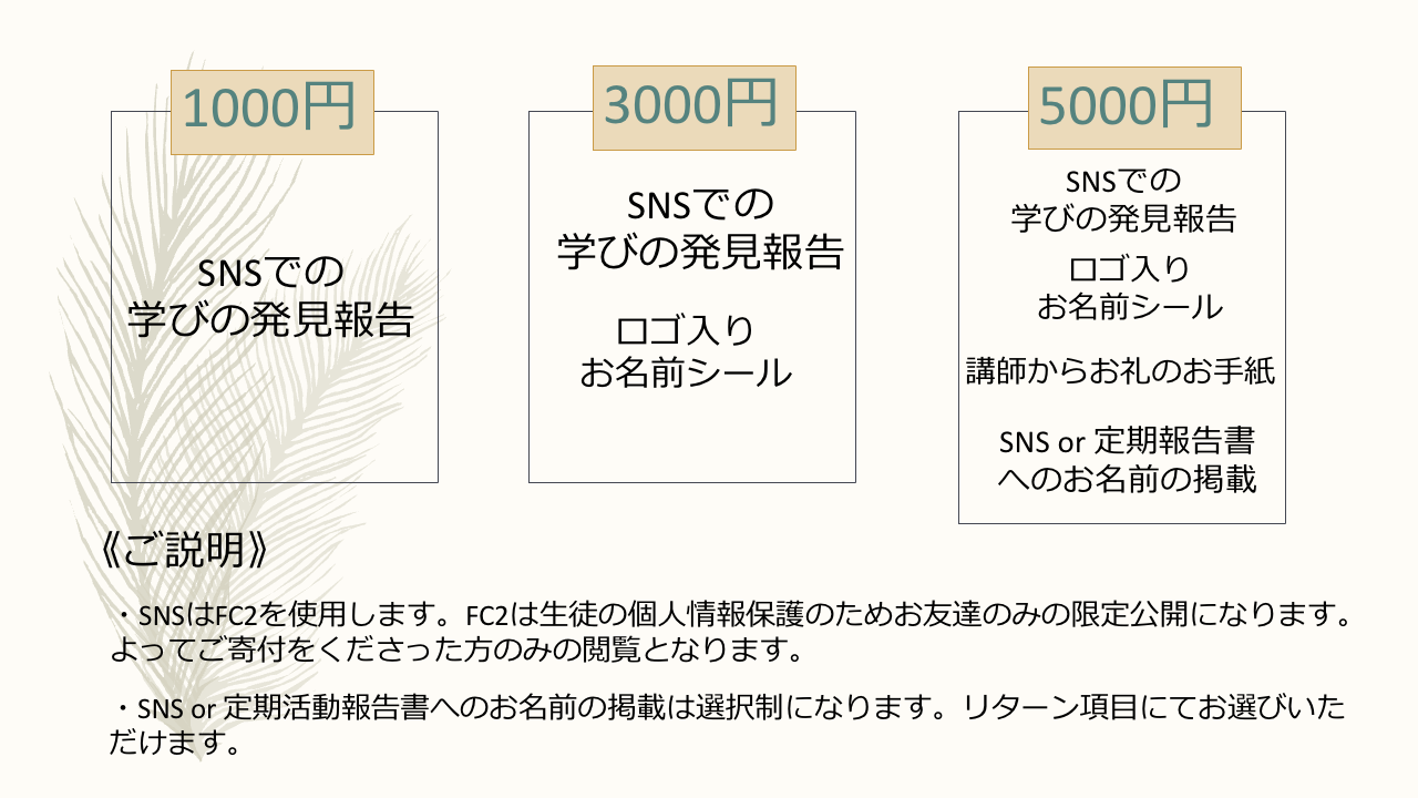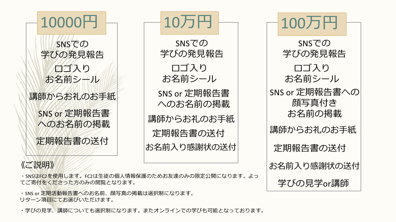 子どもたちに質の良い学びを提供すべく活動しておりますが、なかなか力が及ばないところも多々あります。どうかお力添えをお願い致します。