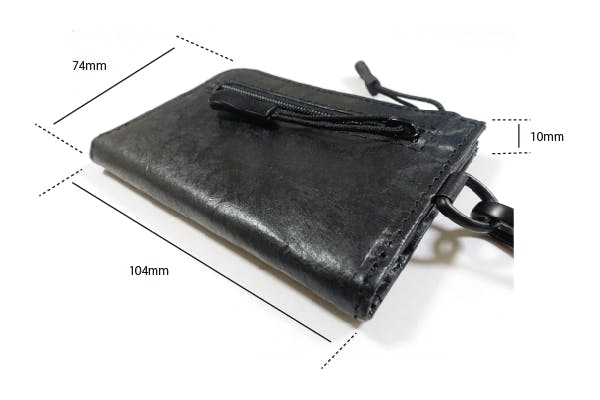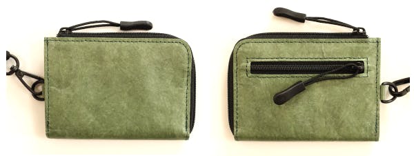 胸ポケットや内ポケットにもスッキリ収まるサイズ感。タイベック®自体が薄い素材のため、小銭、カード、紙幣、鍵と十分な収納力ながら薄さをキープします。
