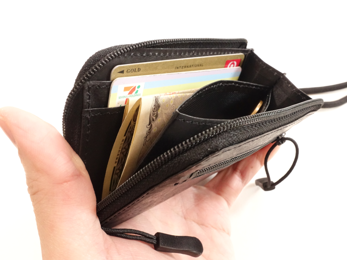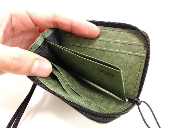 胸ポケットや内ポケットにもスッキリ収まるサイズ感。タイベック®自体が薄い素材のため、小銭、カード、紙幣、鍵と十分な収納力ながら薄さをキープします。