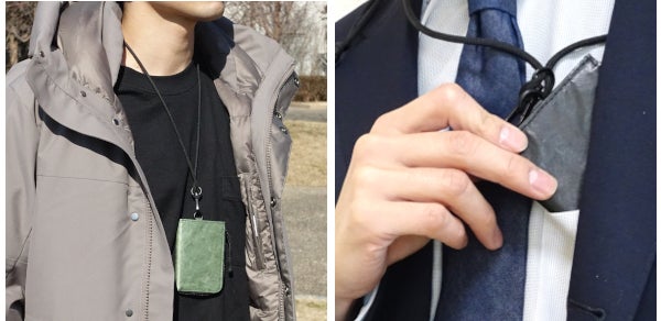首からぶら下げることを考えたとき、一番の課題は重さによる負担です。当初はナイロン素材を検討してきましたが、子供っぽいという意見も踏まえ、『SM3』 ではタイベック®素材を採用。26gという軽さを実現しつつ、大人の男性にも映えるデザインを目指しました。