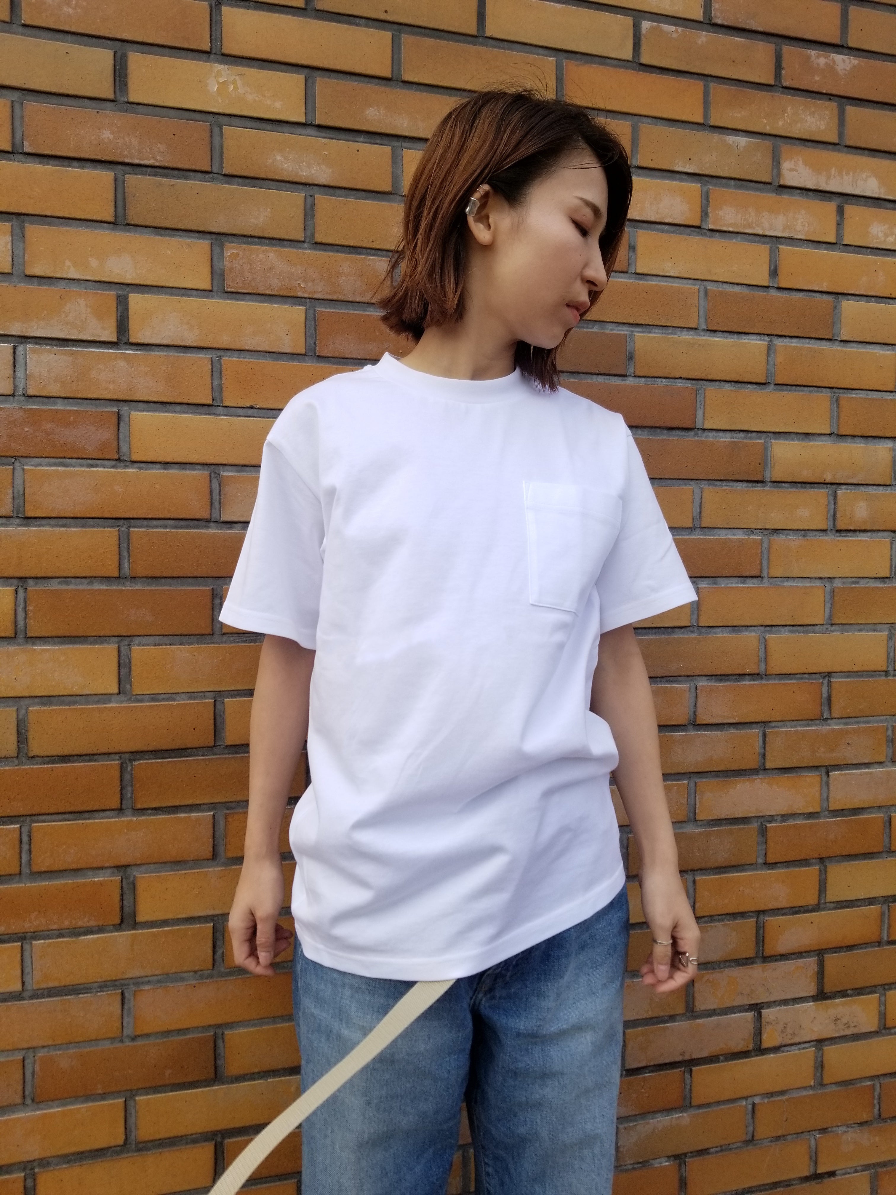 今回お届けするのは、ドロップショルダーのゆったりとしたサイズ感が心地いい、シンプルなポケットTシャツ。