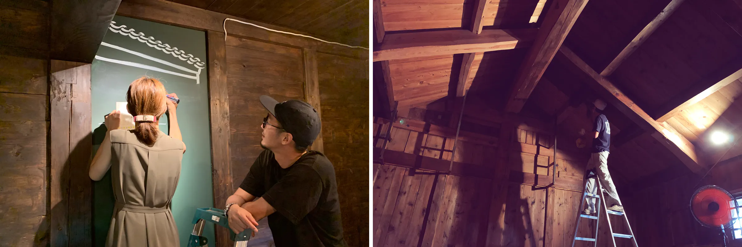 元々は庄屋であった柴田家がお米の貯蔵庫として使用していた場所です。近年は物置として使用しており、足の踏み場もなく、埃が積もり、誰も入りたがらないような場所でした笑。しかし、婿養子として外からきた私にとっては、宝の山。一つ一つの古い物に愛着を感じ、どんな風に使われていたか、どんな時代だったのか想像を膨らませていました。そして何より土蔵の独特な佇まいや、その雰囲気に一気に虜になりました。3年ほどかけて少しずつ片付けを進め、イベントなどで使用するようになりました(正直、片付けはめっちゃ大変でした!笑)。長年、敷地の奥でひっそりと佇み、日の目を浴びなかった土蔵も喜んでいる感じがしました。