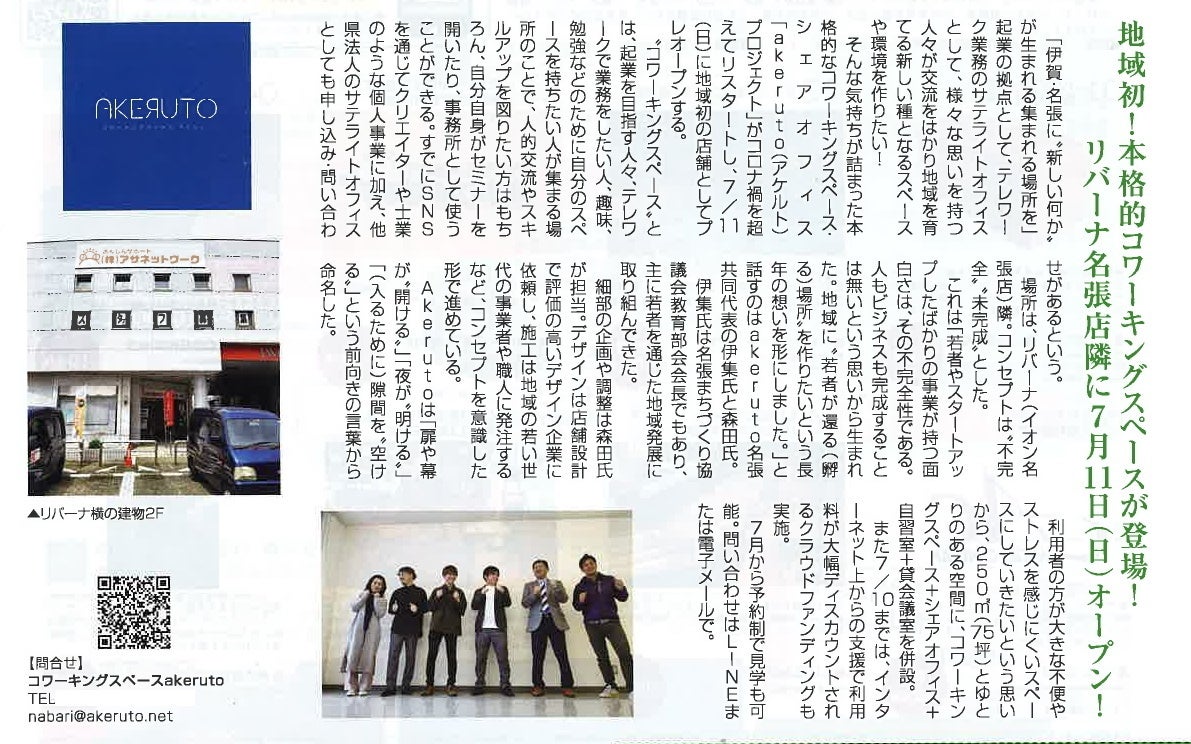 akeruto名張が地域情報誌のリィーガ様に掲載されました!