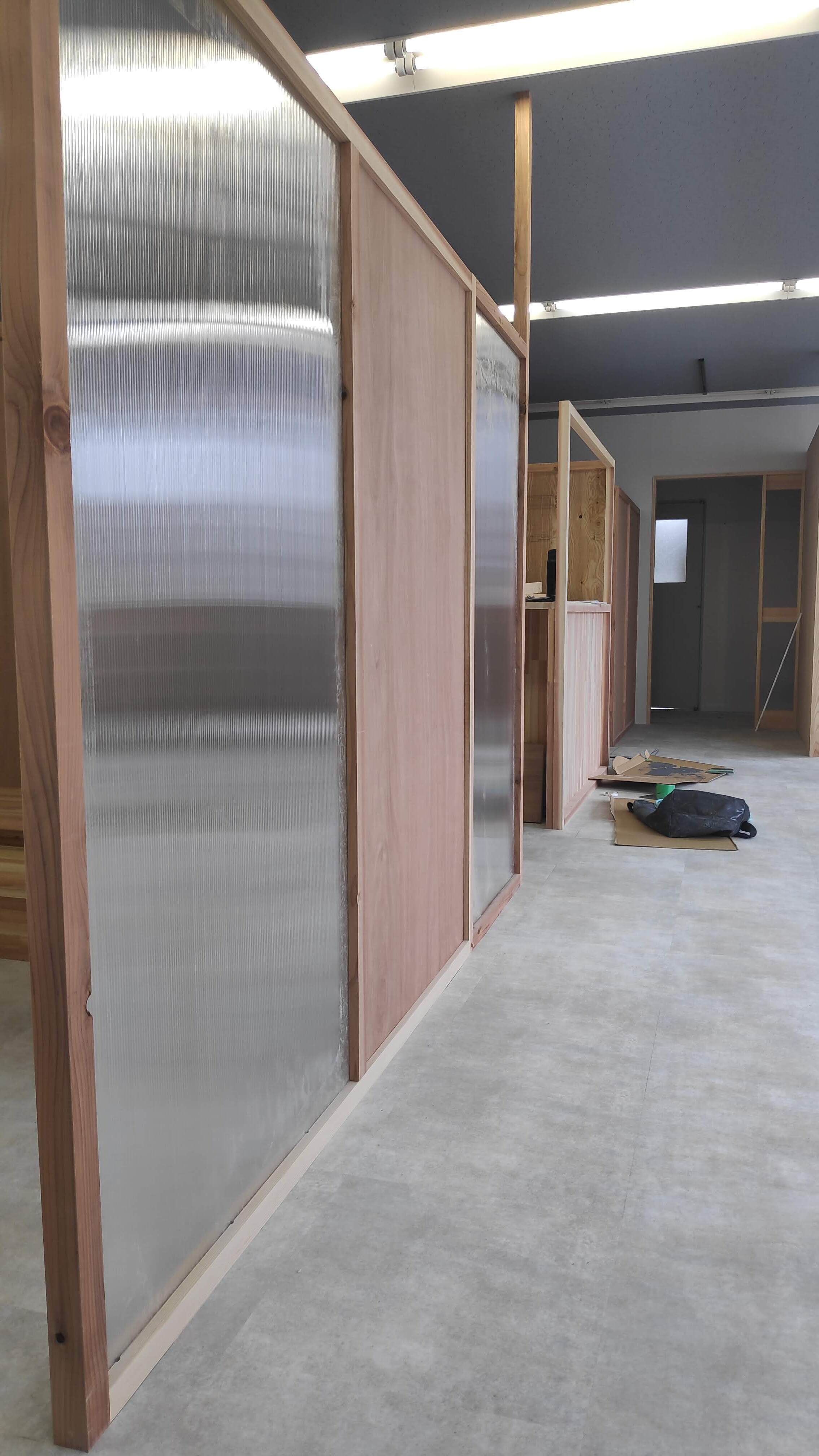 工事のほうは床のタイル貼り付け中です。取材や見学に来られる方からは「本当に完成するんですか?」とかご心配の声をいただいておりますが、「私にもわかりません!」と元気よくお答えしております。