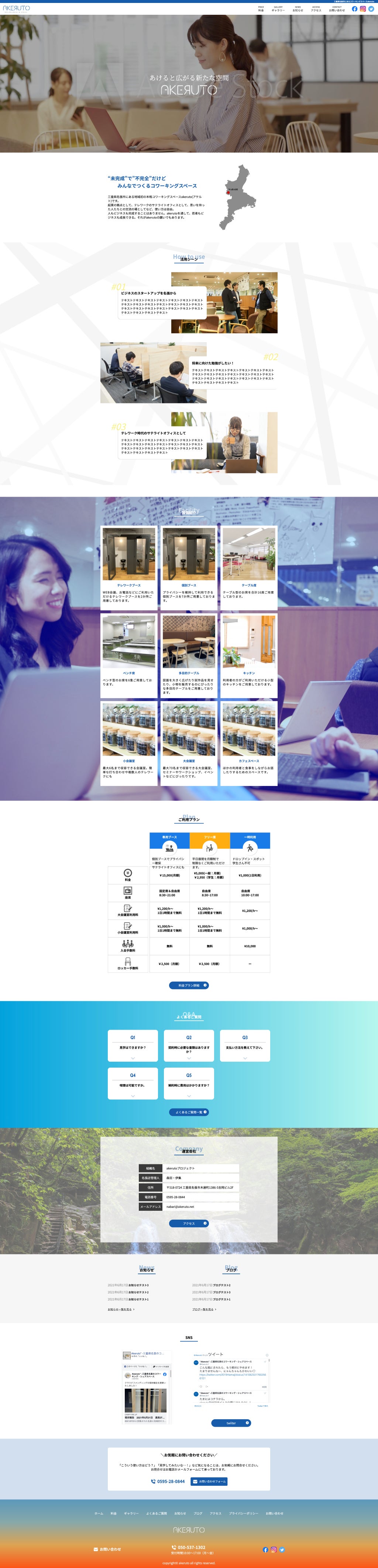 まだまだ未完成ですが、WEBサイトも製作中です。今回は他のコワーキングスペースで活躍している若手のチームに依頼しています。