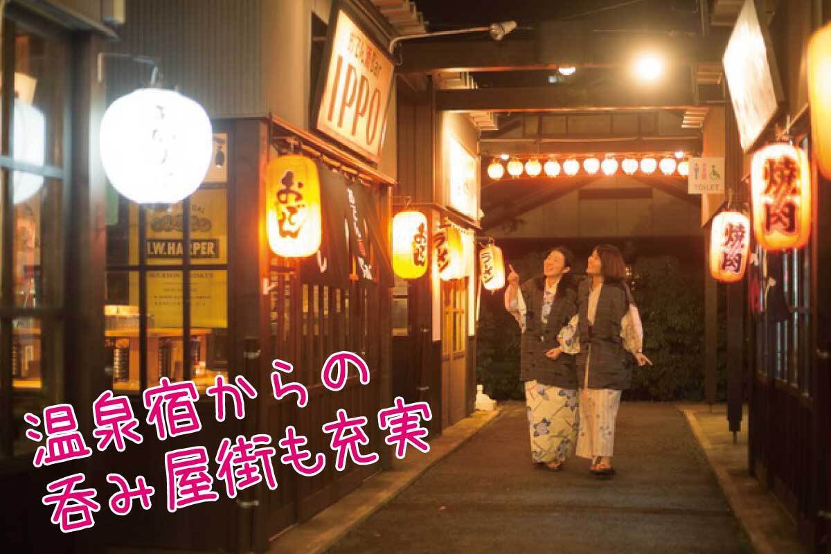温泉宿を中心として、その周りには飲食店や昭和な雰囲気漂うスナック、お土産さんなど、コンテンツが豊富にあります。代表的なもので言えば「あわら温泉屋台村」があり、浴衣のまま外で食事を楽しむことができ、観光客を飽きさせないまちになっています。