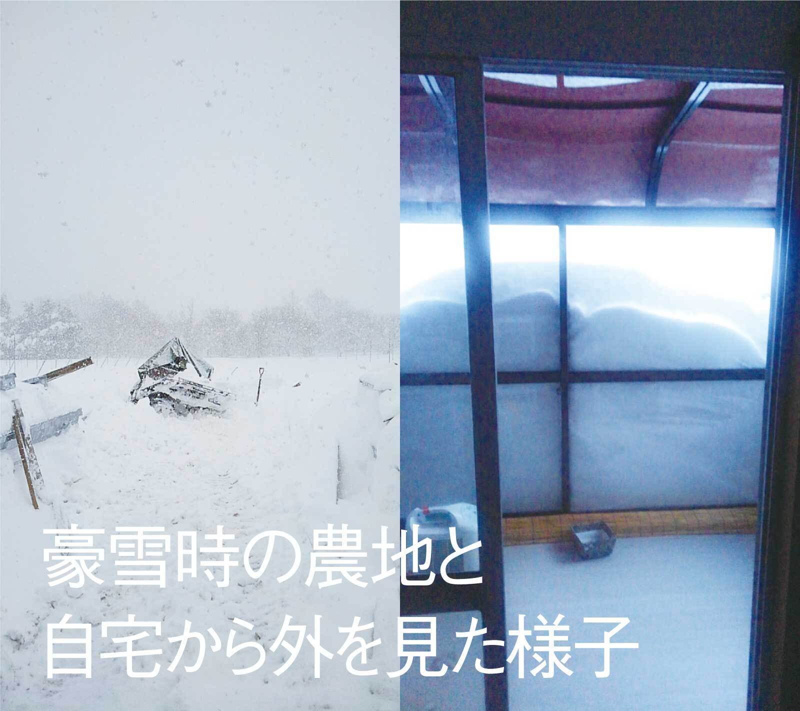 私もお世話になっていた農業の師匠のビニールハウスが幸い倒壊を免れていたので、それを避けるために、初めてのカンジキを履きながらビニールを破く作業を行ったり、自身のビニールハウスにおいても、雪が解けるように毎晩石油ストーブをつけにいくという経験をしました。